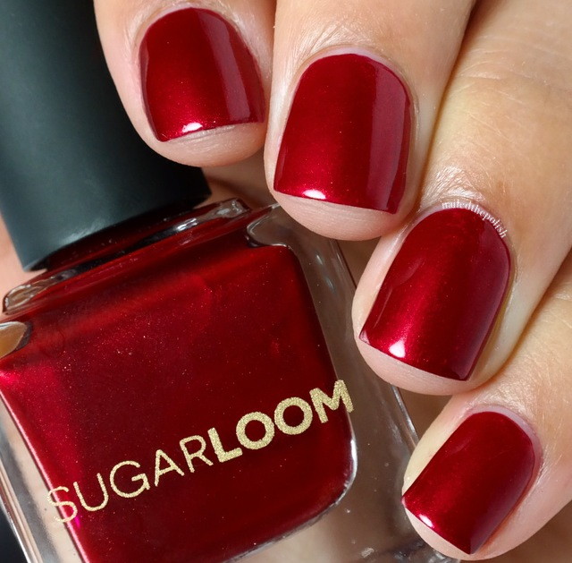 Today I have for you swatches and my review of a new brand (to me at least): Sugarloom Cosmetics. Sugarloom Cosmetics is a five-free, cruelty-free, and vegan company manufacturing nail polish and treatments in the US. I was sent three polishes to swatch: one from their new holiday collection and the other two from their previous collections.