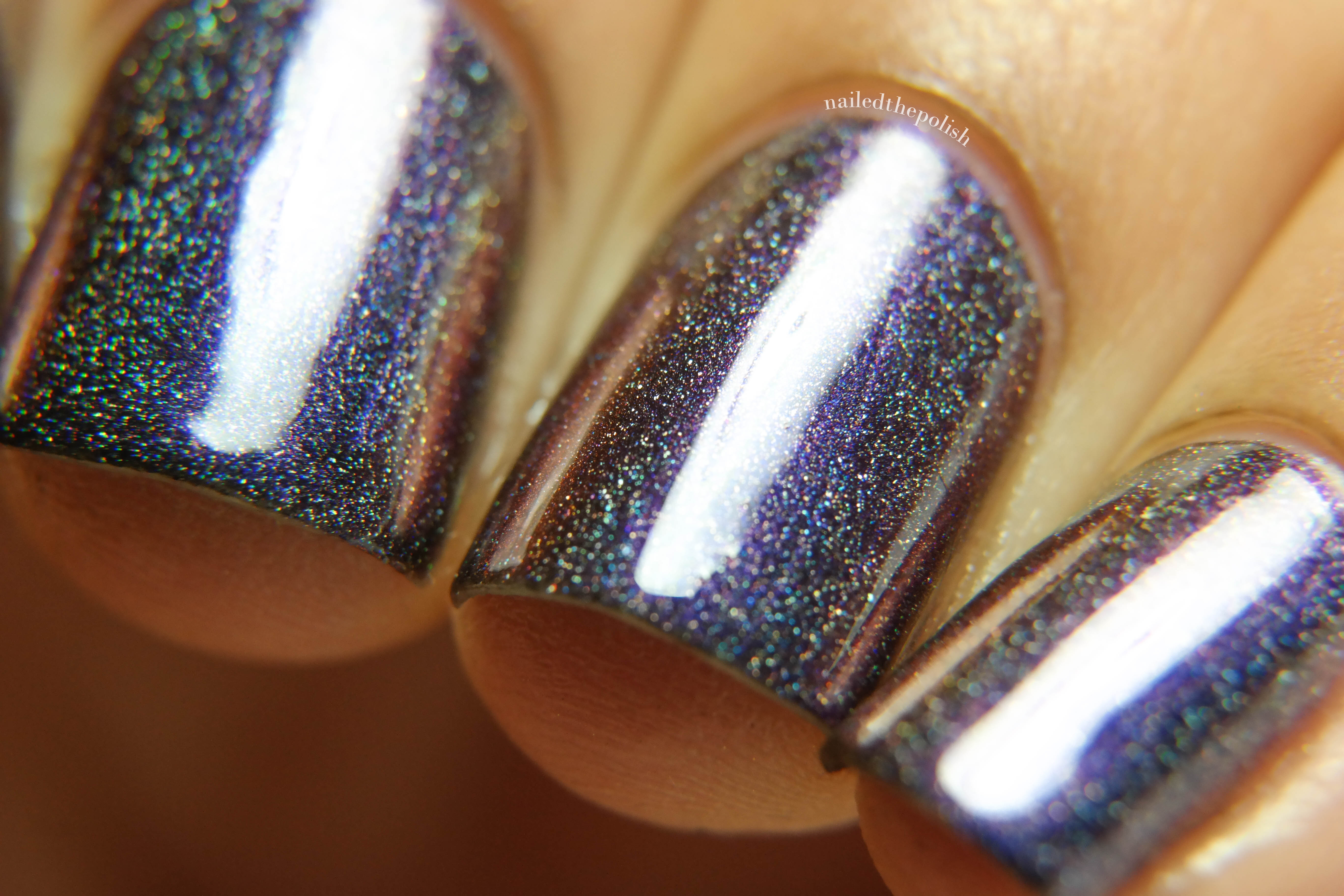 Dazed and Confused is a multi-chrome polish that shifts from purple to blue to red-orange with holo shimmer. Yes you read that right – HOLO MULTI-CHROME! Pictured is two coats with top coat. Seriously, this polish is amazingly gorgeous! I kept this swatch on for a day and I could not stop staring at it! My mind could not handle the awesomeness of the macro shots.