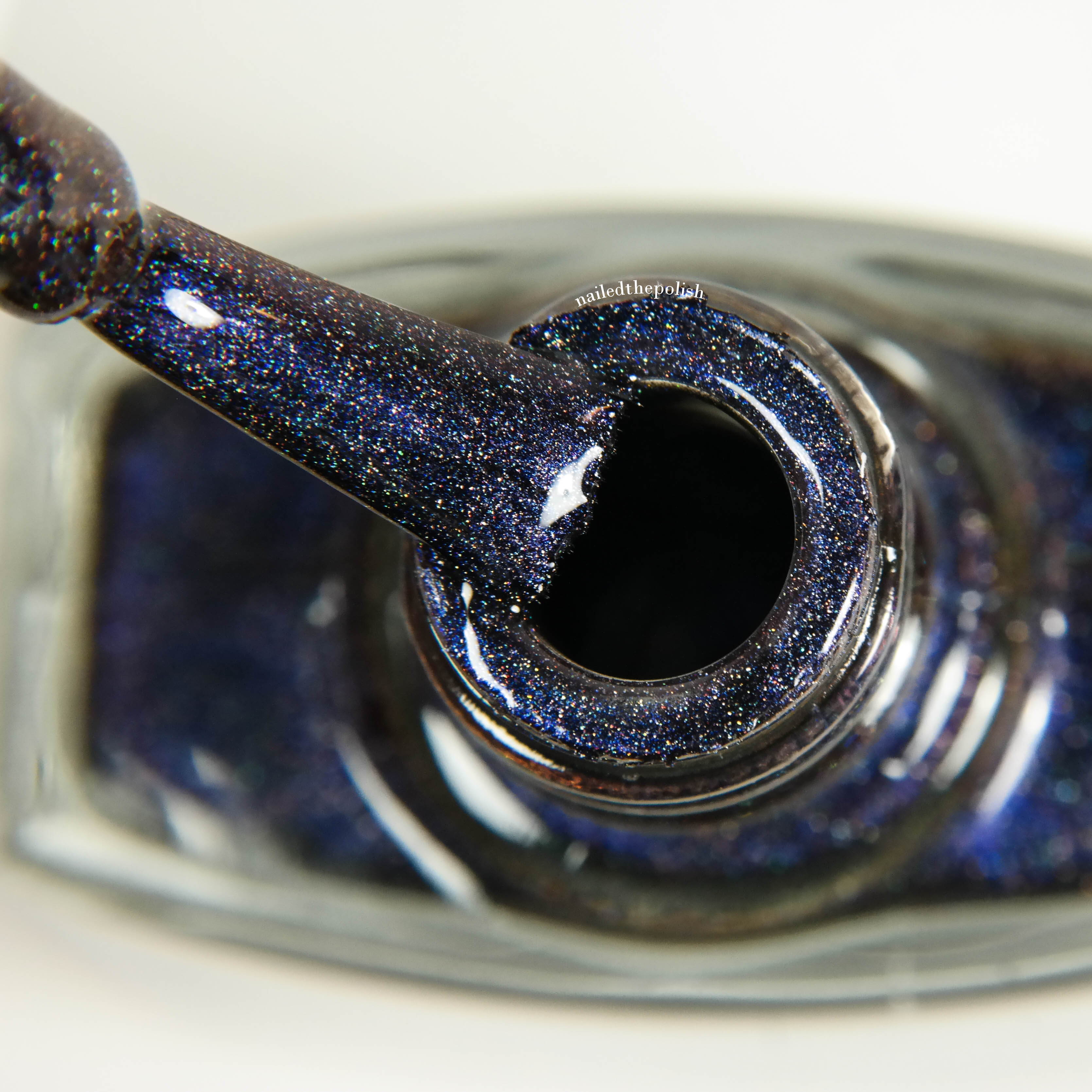 Opium is a black polish with copper to green shifting duochrome shimmers. Shown is two coats with top coat. If there was ever a polish to make someone feel badass, it’s this one! I felt so cool and tough with it on as weird as that might sound, ha! The shift is very slight but you can definitely see it in the following macro shots.