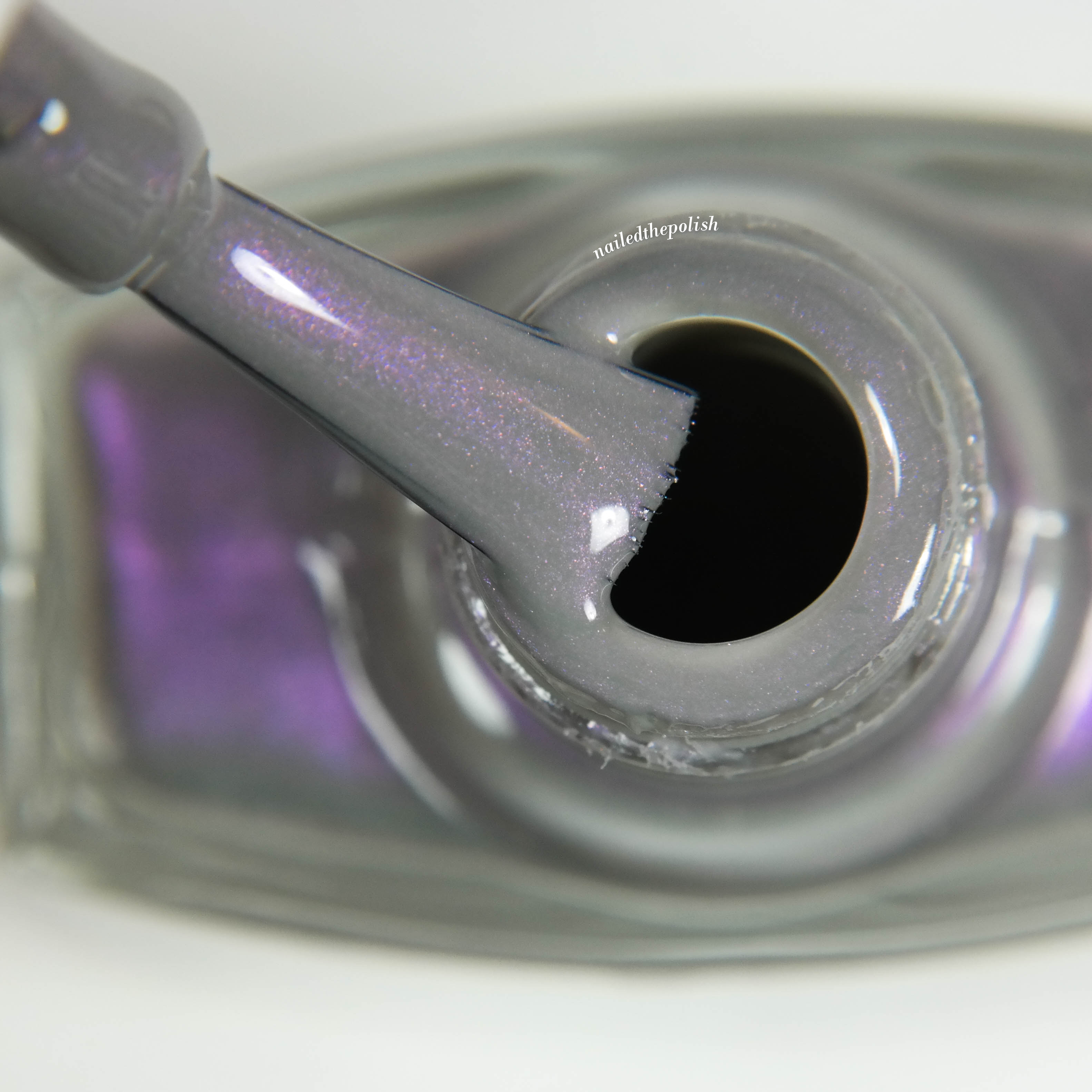 Muse is a concrete grey polish with light purple shimmer. Here I have two easy coats with top coat. I love how delicate this shade is! The shimmer is very present in this polish but it’s not overwhelming.