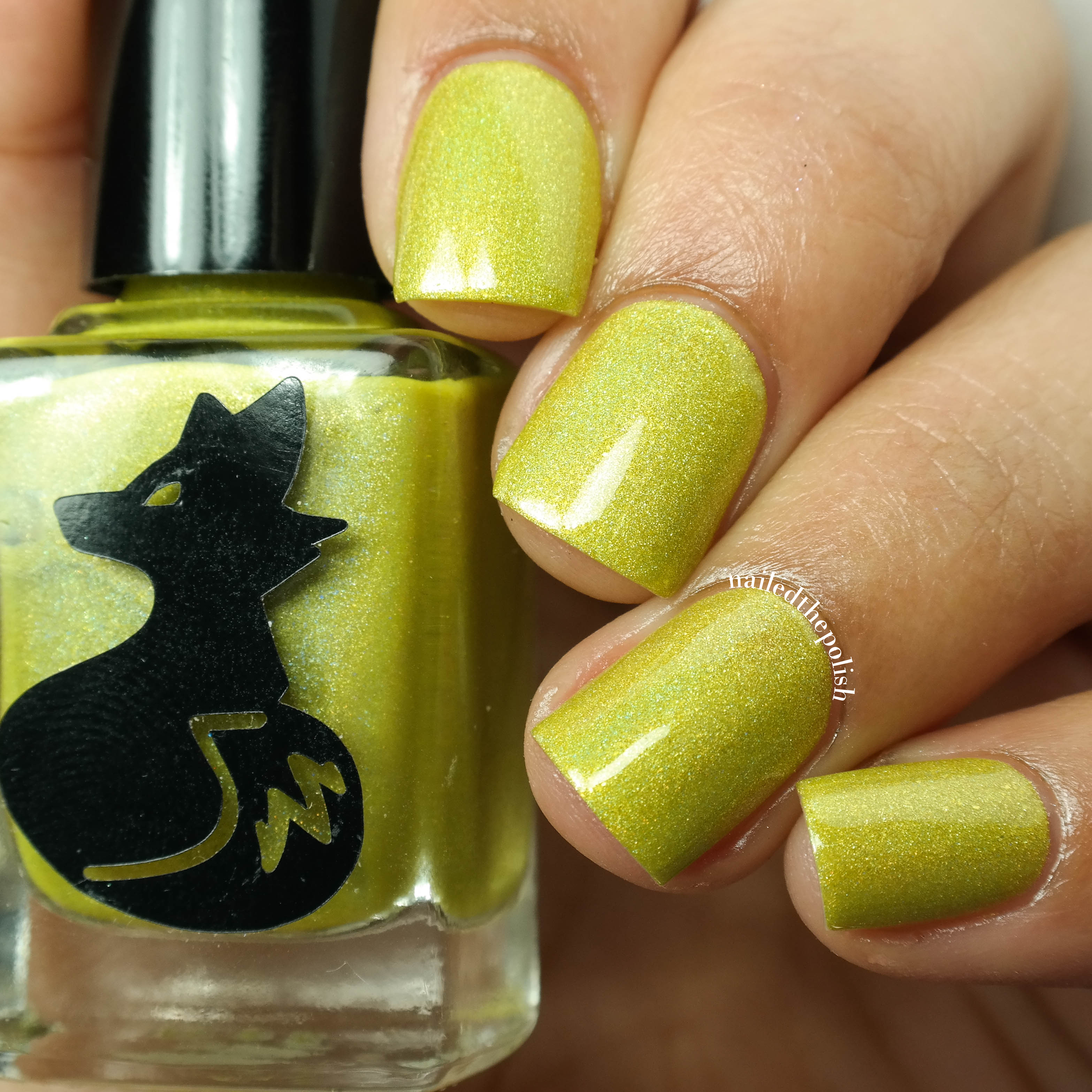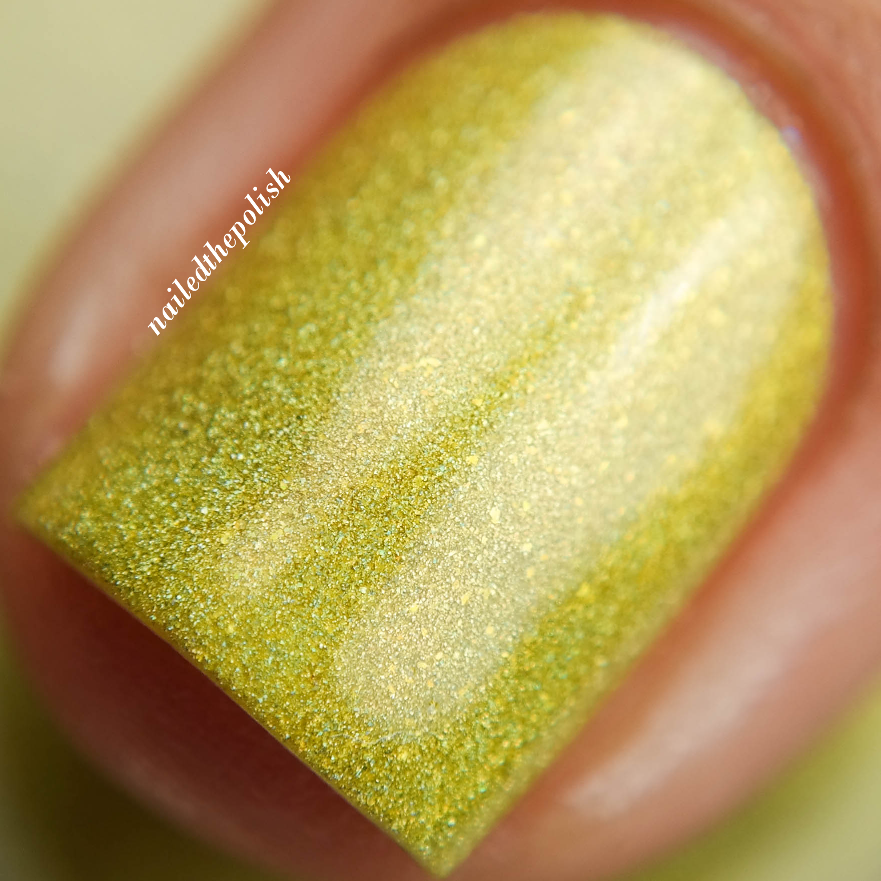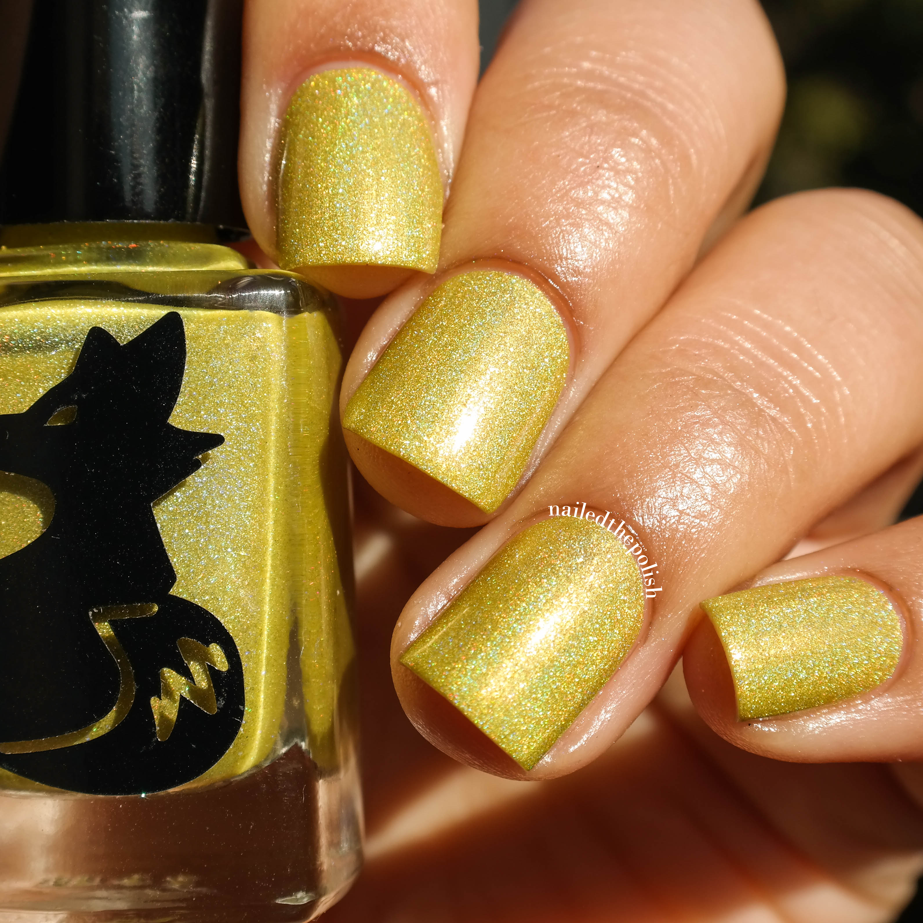 Sunshine Makes Me Sneezy is a sunshine yellow linear holographic polish with added gold shimmers/micro flakies. Two coats with top coat. While the sun might make some people sneezy, this polish is sure to make everyone happy. Pure perfection.