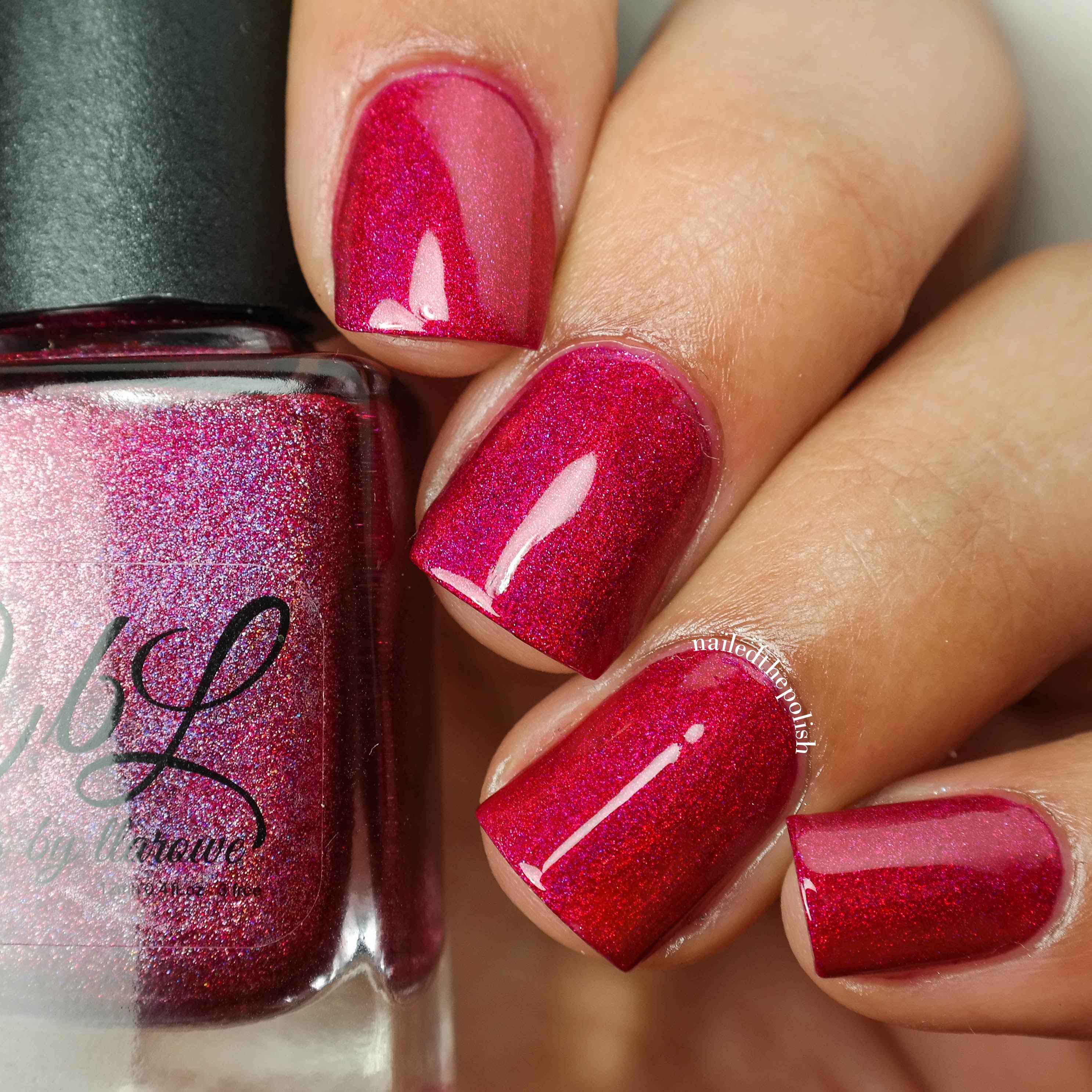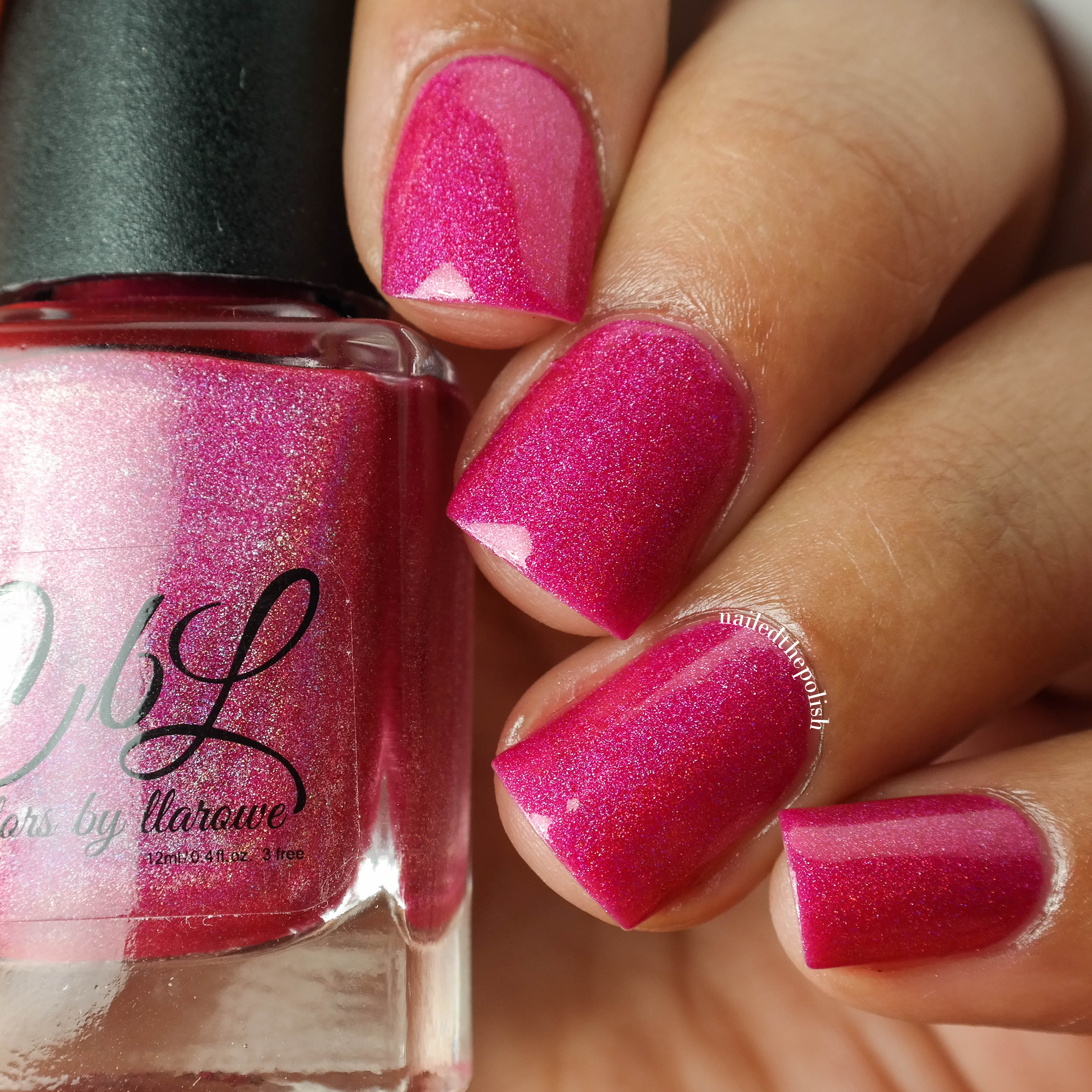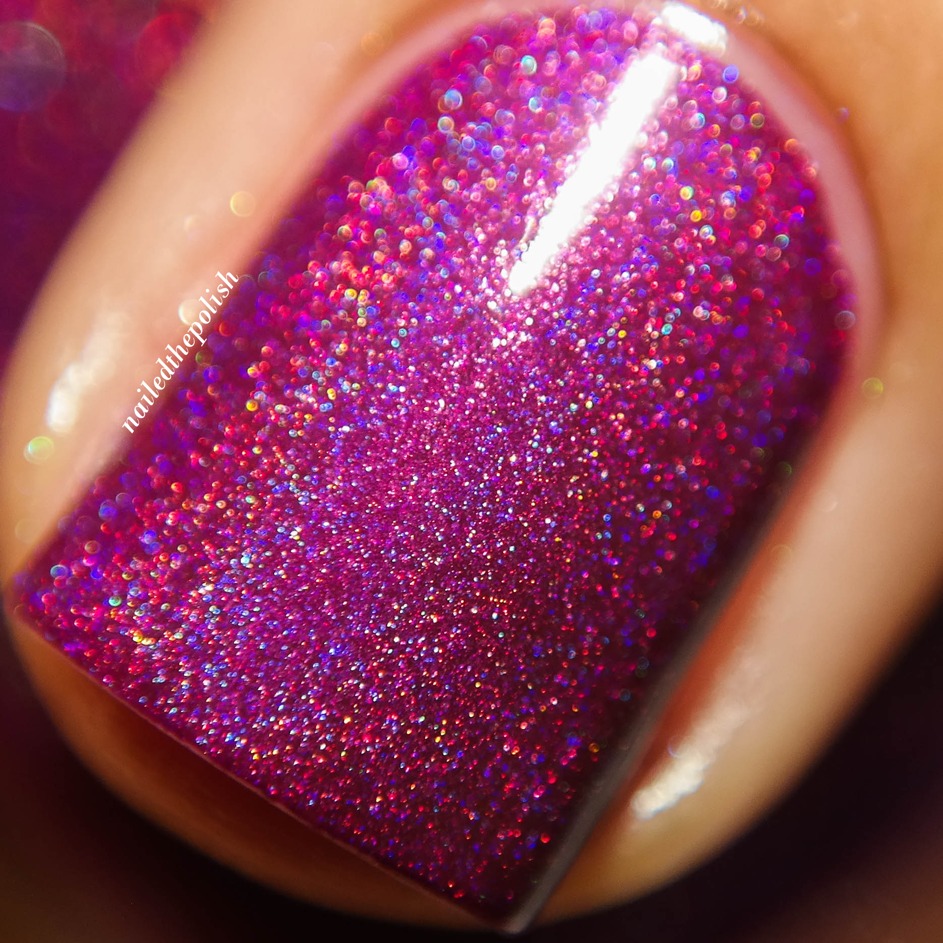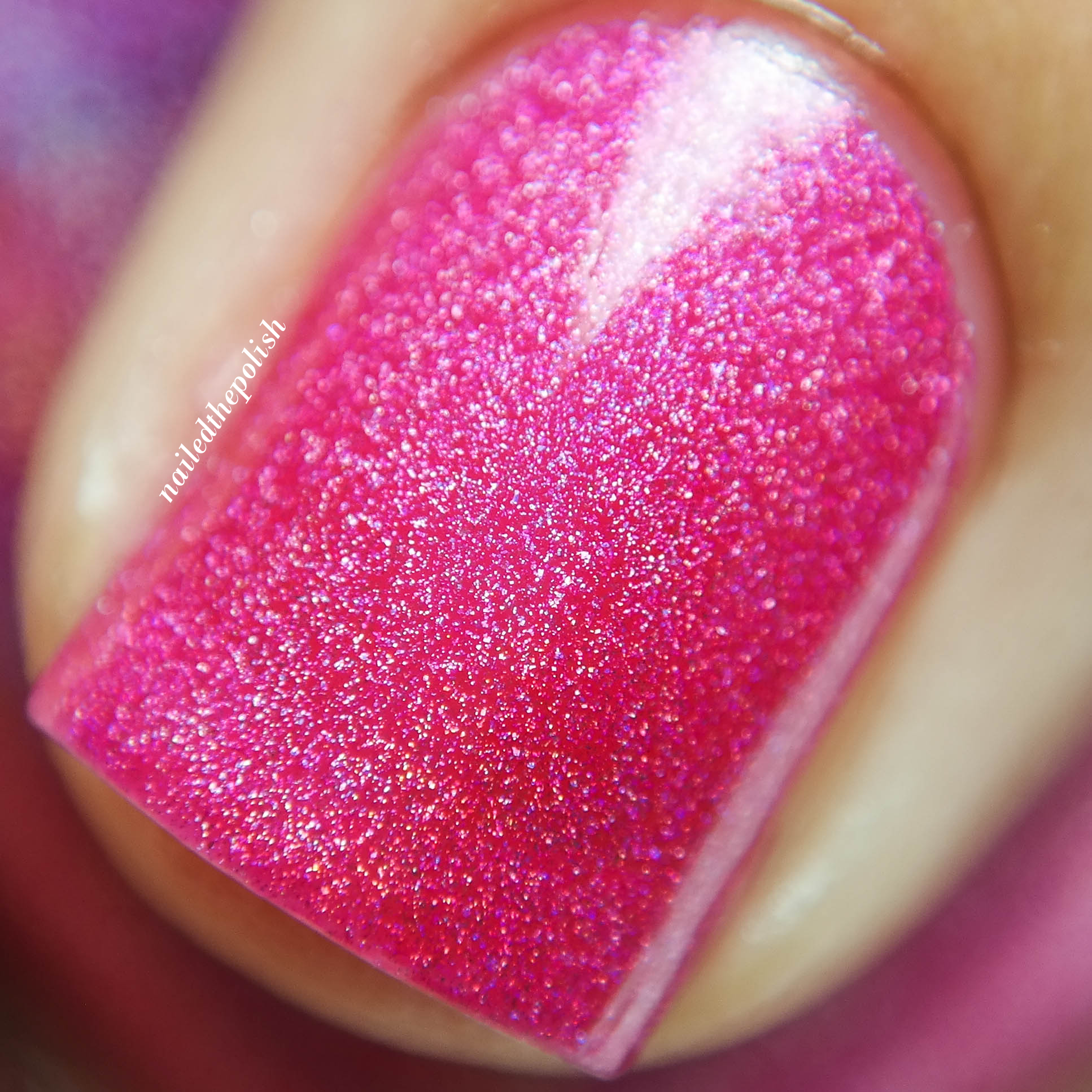 Vivian + Edward is a bright hot pink holo with purple shimmer. Shown here is ONE coat plus top coat. Another polish from this collection that I just simply adore. Very girly, very pink, very holo!
