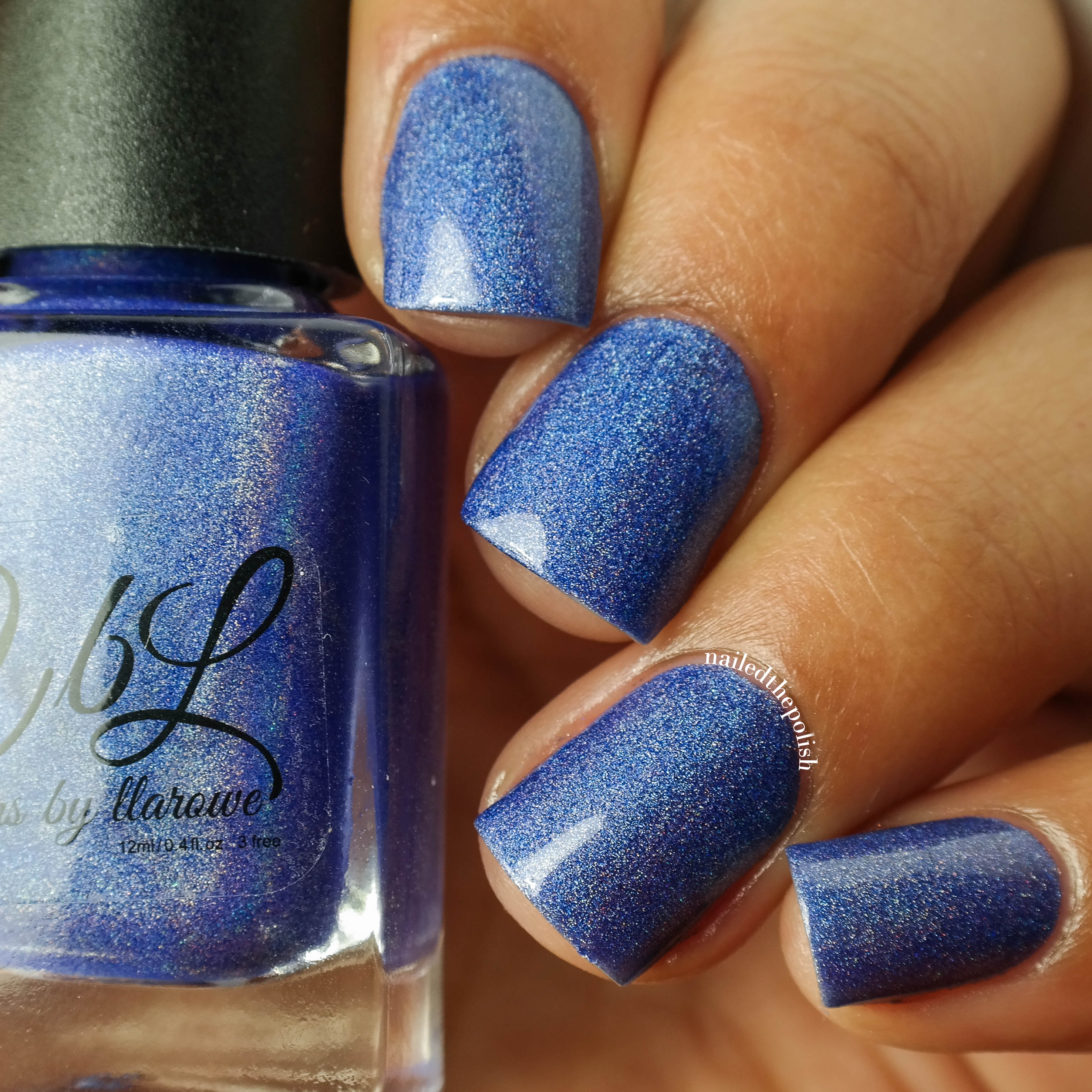 A Lot More Help Sucking Up is a denim blue holo with scattered pink shimmer. Shown here is ONE coat with top coat. You all must know by now that I love blue and I love holo so the two together… AMAZING!