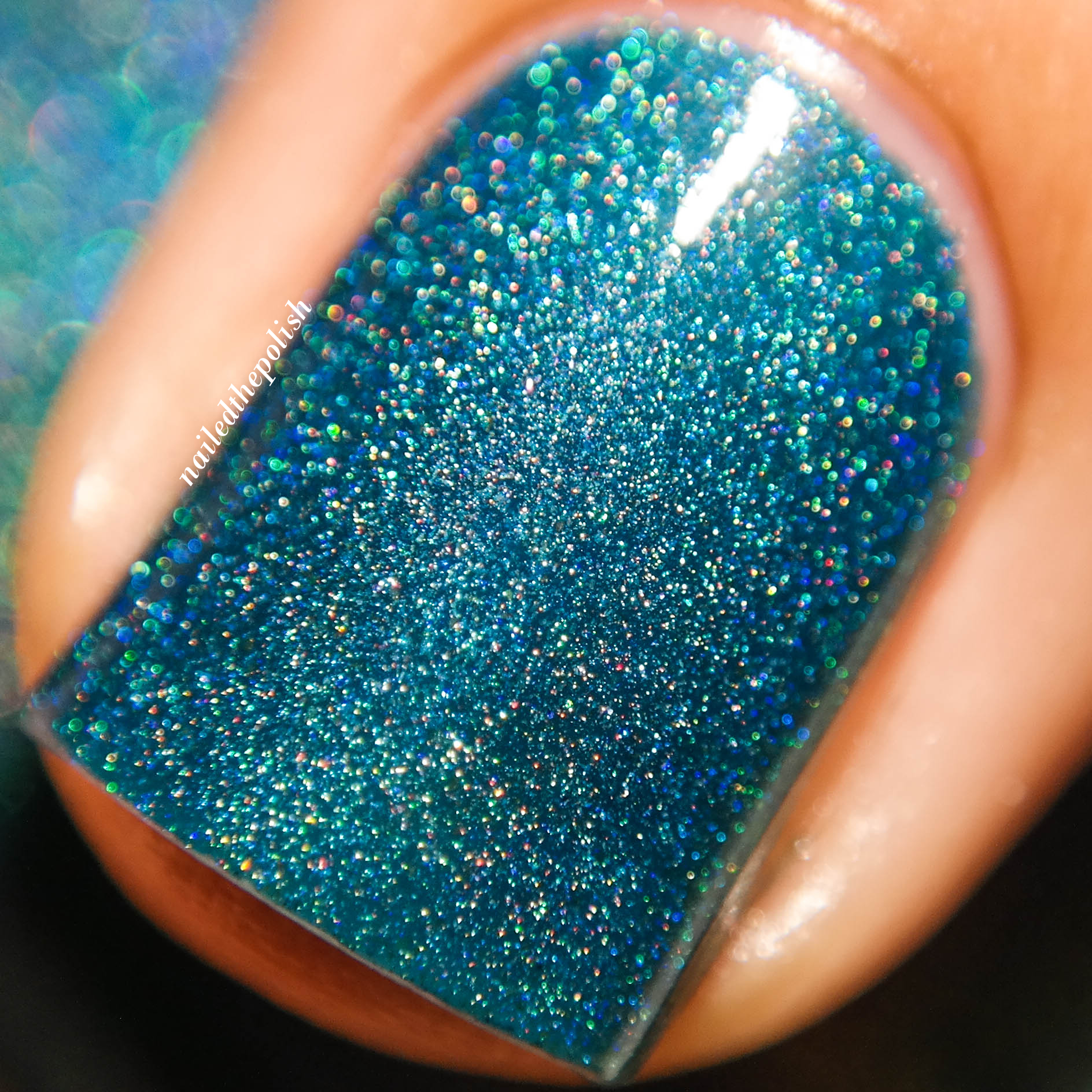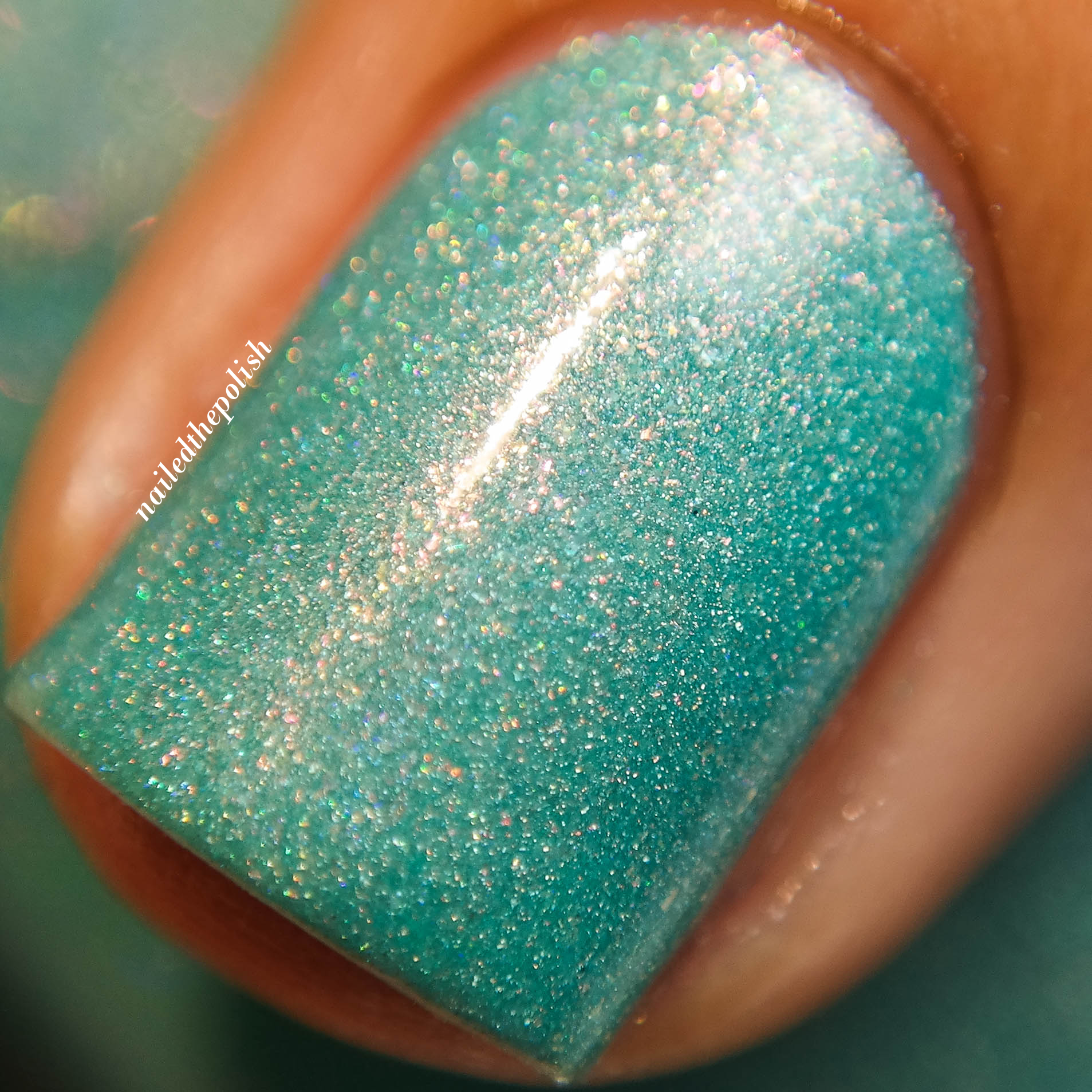 Divot Dance is a teal green holo with subtle color shifting glass flakes. Shown here is ONE coat with top coat. This polish makes me hardcore swoon. At first sight, I knew I would love it and I do!
