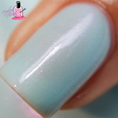 Baby Blue Clue is a baby blue crelly with iridescent violet shimmer. Shown here is three coats plus top coat. This polish is quite sheer so you do need three, maybe four, coats to achieve full opacity. It was a little too thick for me, even after a good shake, and did not level as well as I had hoped. I really do love the blue shade and the shimmer though!