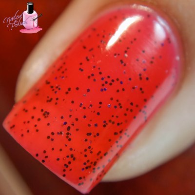 Strawberry Blast is a vibrant red jelly with added red, blue, and black micro glitters. Shown here is three coats plus top coat. This polish is a true jelly with a great formula that makes it very easy to control. I didn’t think that I would be a fan because it looks a bit dull from the bottle. However once on my nails, the vibrancy came out and I quickly changed my opinion. If you’re a jelly fan, this is one polish that you should have in your collection!