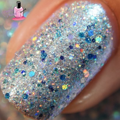 Ice Palace is a sapphire, ocean, turquoise, silver and sky blue holo glitter in a holographic base with glass flecks and bright blue shimmer. Shown here is two coats plus top coat. O-M-G! This polish is breath taking! The shimmer, the holo base, the holo glitters – I. Just. Can’t. ❤ Side note: I’m a huge Disney fan. The whole time I was wearing this polish I couldn’t help but think that this would be Elsa’s go-to shade lol! This polish is a little thick due to all of the glitters but overall it has a good application. Plus where it lacks in application, it makes up for in dry time and leveling!