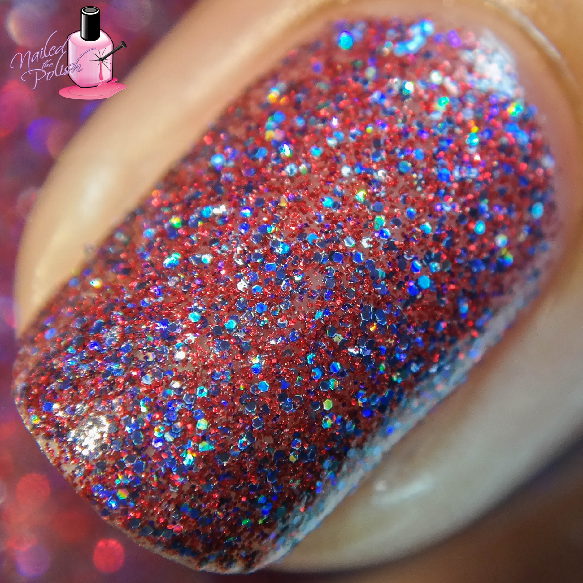 Science is Real is a red micro glitter with purple and blue holo glitters. Shown here is two coats plus top coat. Of the five polishes in this collection, this has the thickest formula. I had some difficulty with the coats drying before I could cover my nail, however the coverage is great so I was able to get away with just two coats. This is another polish that is definitely unique to my collection!