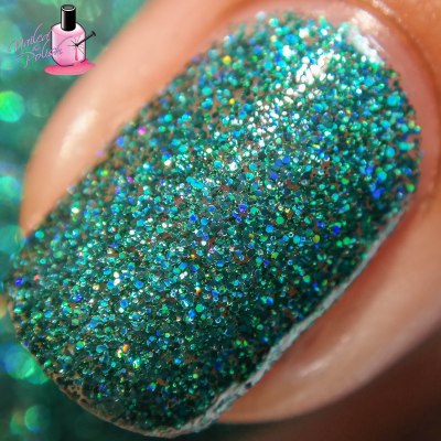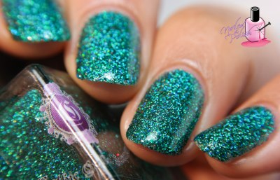 Last up is Sounds of Science – a teal holo micro glitter with green and aqua glitters. Shown here is three coats plus top coat. Like Weird Science, this polish is a little on the thicker side but again, easily workable. I love the colors of the glitters in this polish – very mermaid-esque!