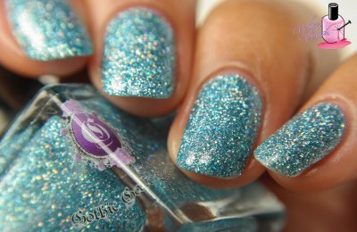 Theory of Everything is a lovely baby blue micro glitter with added silver and holographic glitters. Shown here is three coats plus top coat. I had pretty good coverage in two coats but added a third to completely reach opacity. This polish has a great glitter to base ratio while still having an easy formula to work with.