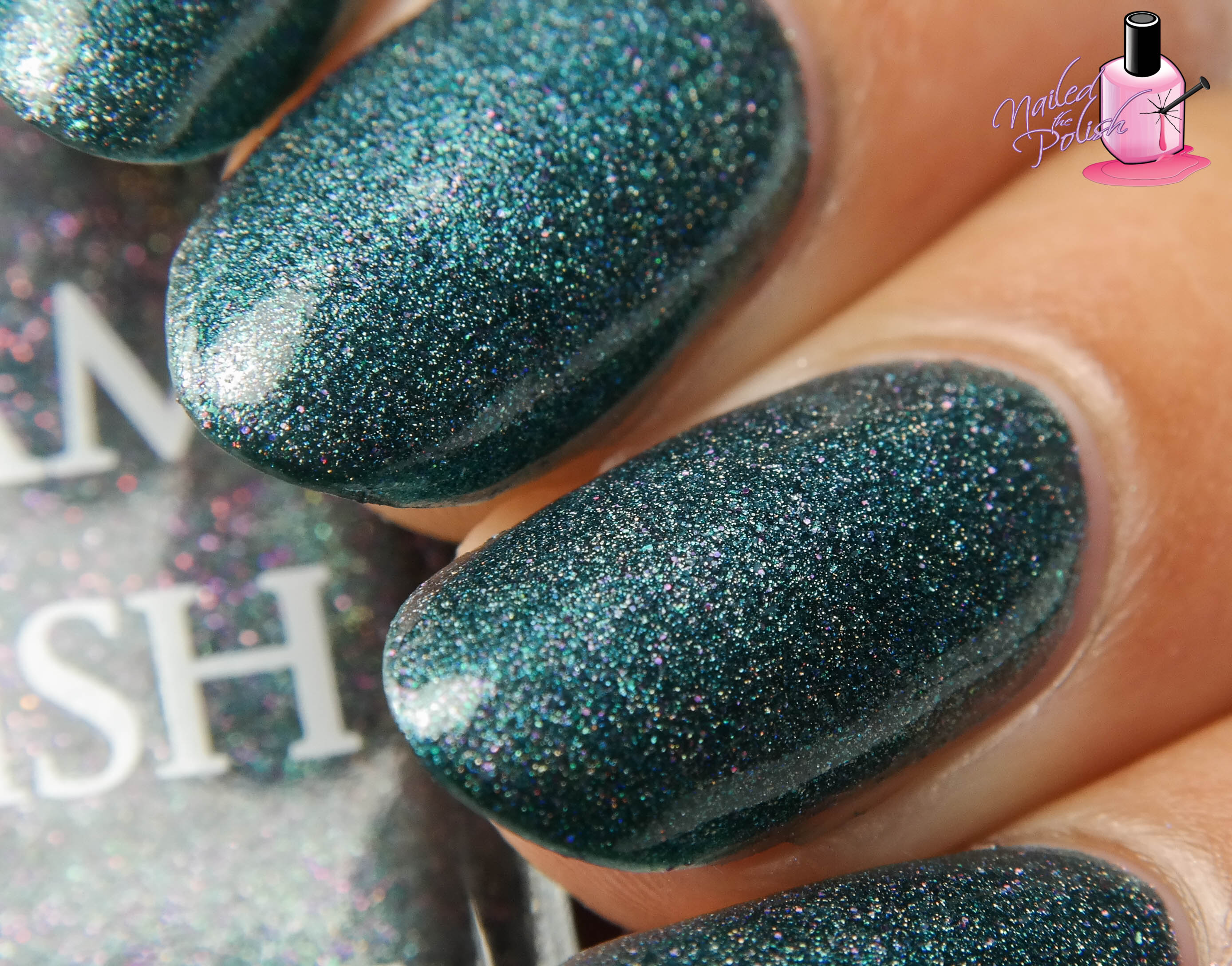 Hostile is a stunning dark emerald green holo with a slight silver shimmer and green and holo micro glitters. Shown here is ONE coat plus top coat. Oh man, this polish is to die for. I can’t even begin to explain all of the wonderful elements in this polish so I hope that my pictures really do say 1000 words.