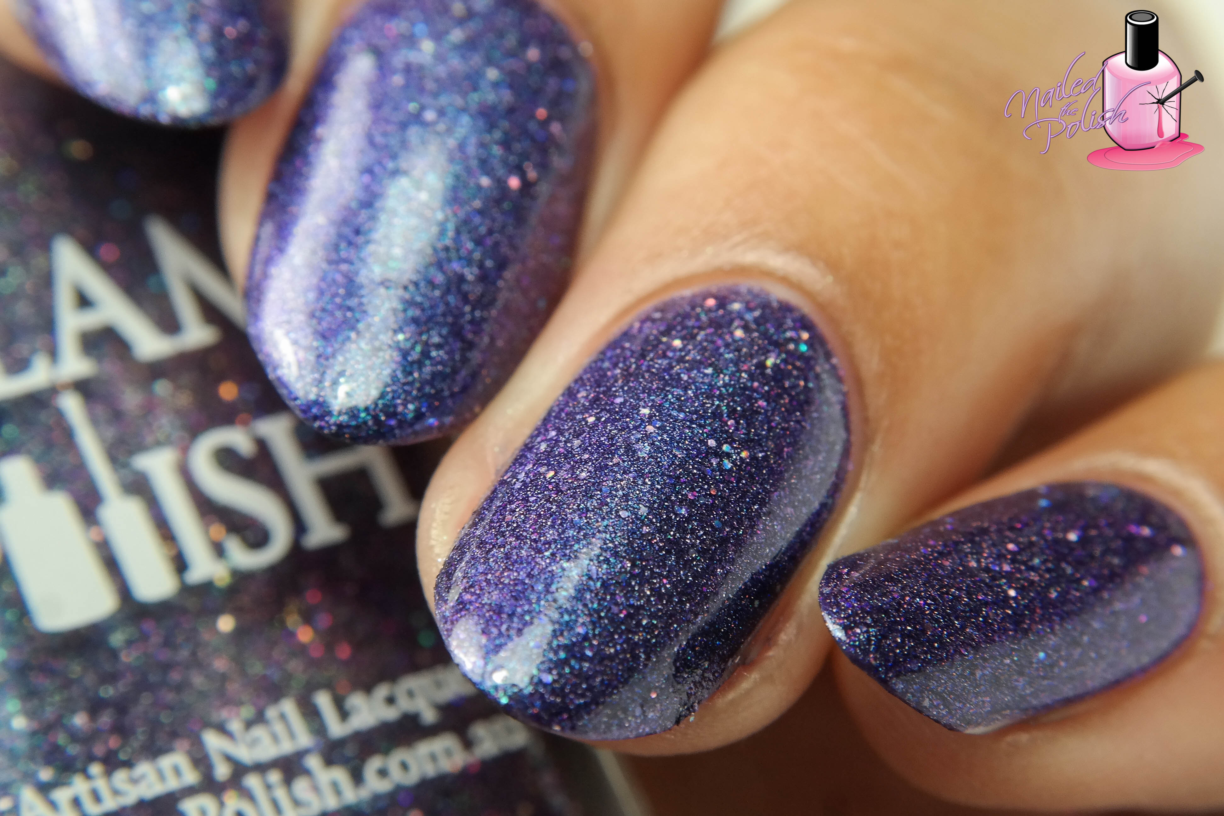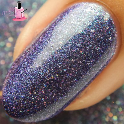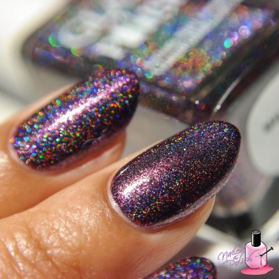 Despair is a gorgeous dark purple holo with violet shimmer and dark purple and holo micro glitter. Shown here is ONE coat plus top coat. This baby is absolute perfection! Amazing formula, wonderful application, and super pigmented.