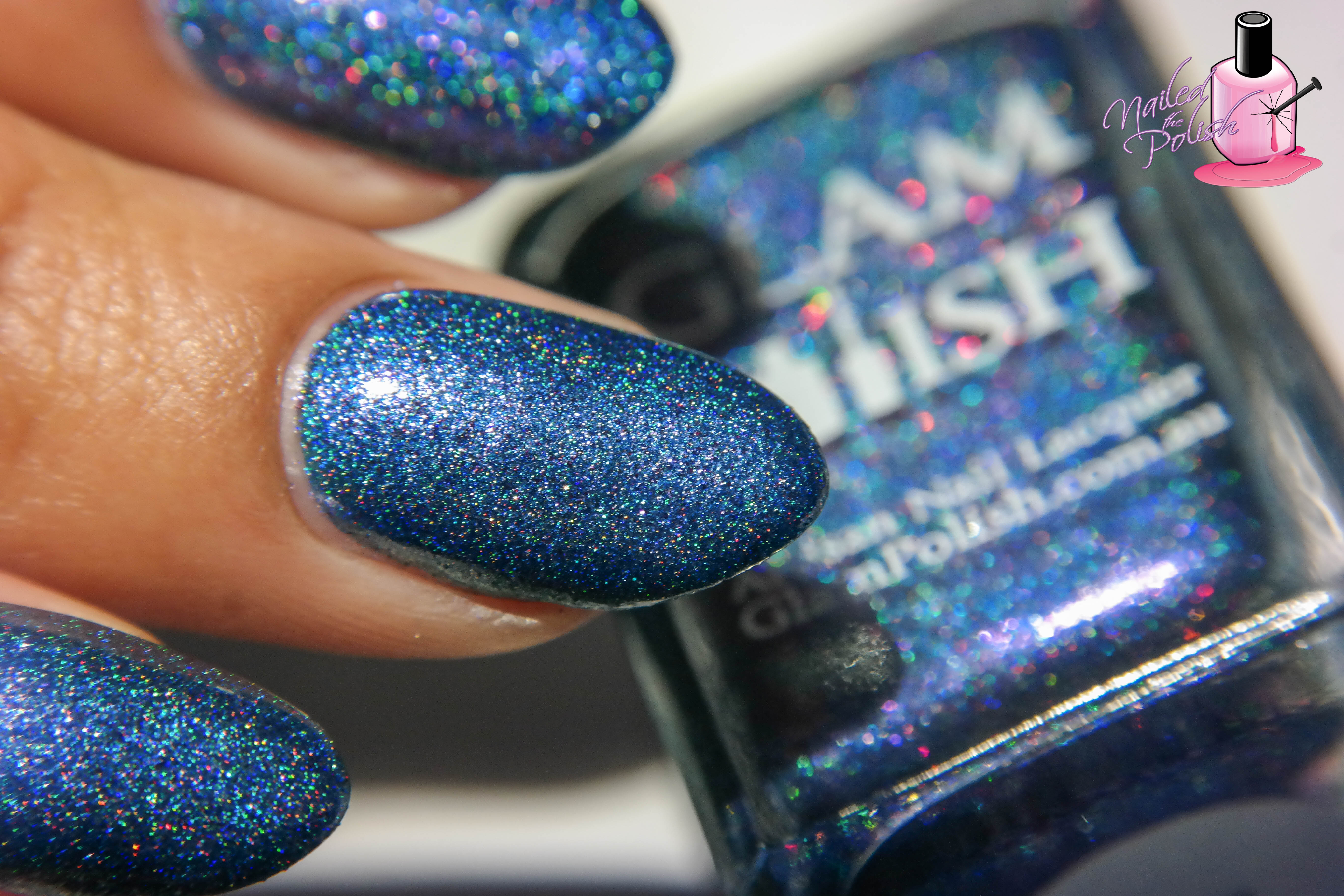 Sinister is a lovely vibrant blue holo with violet shimmer and red and holo micro glitter. Shown here is two coats plus top coat. This could easily be a one coater! Again, the formula is amazing. So smooth, so creamy, perfect to control!