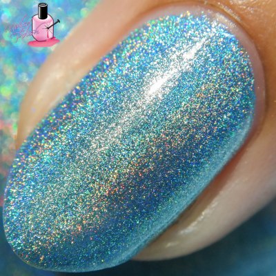 Blue Hawaiian is a light blue linear holo. Shown here is two coats plus top coat. This baby blue shade is jaw-dropping! Sometimes with light holos, I find that the holo is so strong that it drowns out the actual color but not here! Even in the most direct of lights, the light blue shines through.