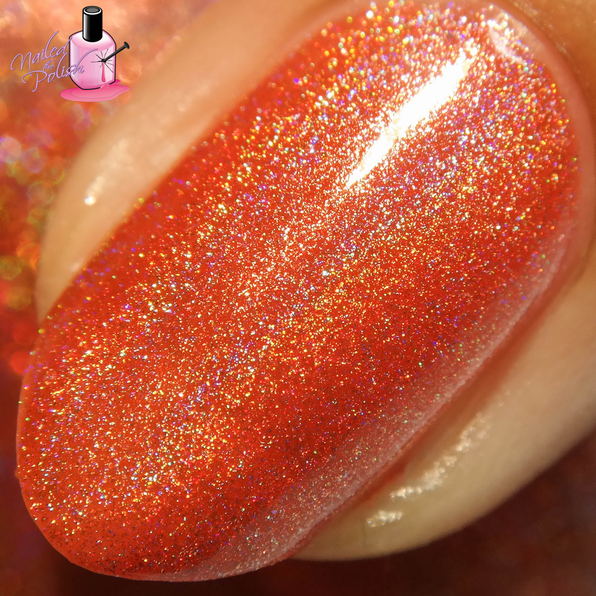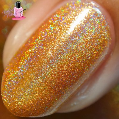 Peach Bellini is a beautiful peachy orange linear holo. Shown here is three coats plus top coat. This polish is a little sheer – I had slight visible nail line after the second coat so I added another coat which covered it right up. Other than that, the formula is very easy to control and has a great dry time!