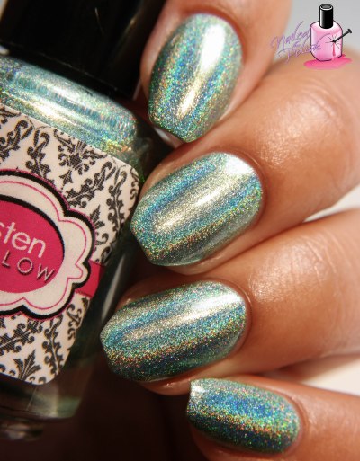 Electric Lemonade is a medium slightly aqua green linear holo. Shown here is two coats plus top coat. I cannot get enough of Electric Lemonade (the polish… and the drink 😉 ). This is definitely one of my favorites from the collection. This shade is absolutely gorgeous!