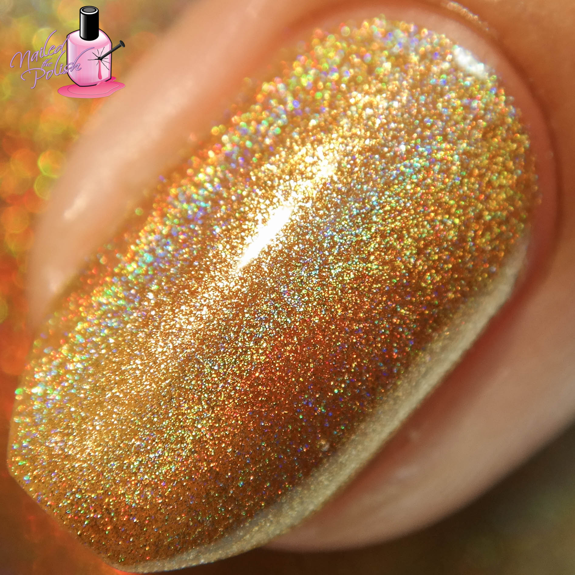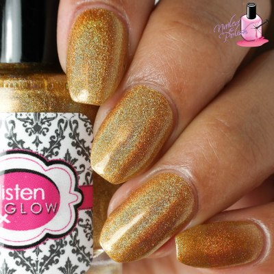 Fireball Cider is a medium golden yellow liner holo. Shown here is two coats plus top coat. Depending on how thick you apply your coats, you may need to add a third coat to reach full opacity. I love how well the pigment and holo work together in this polish!