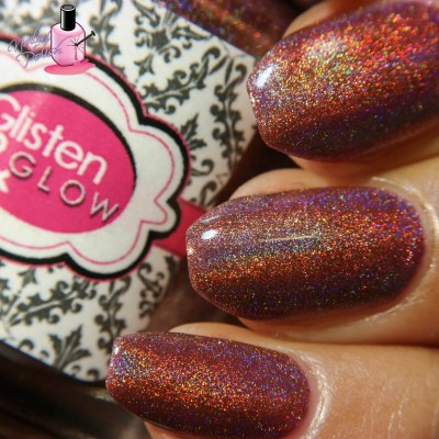 Long Island Iced Tea is a medium brown linear holo. Shown here is three coats plus top coat. I needed to add the third coat to hide the slight visible nail line that showed through. This shade of brown screams fall!