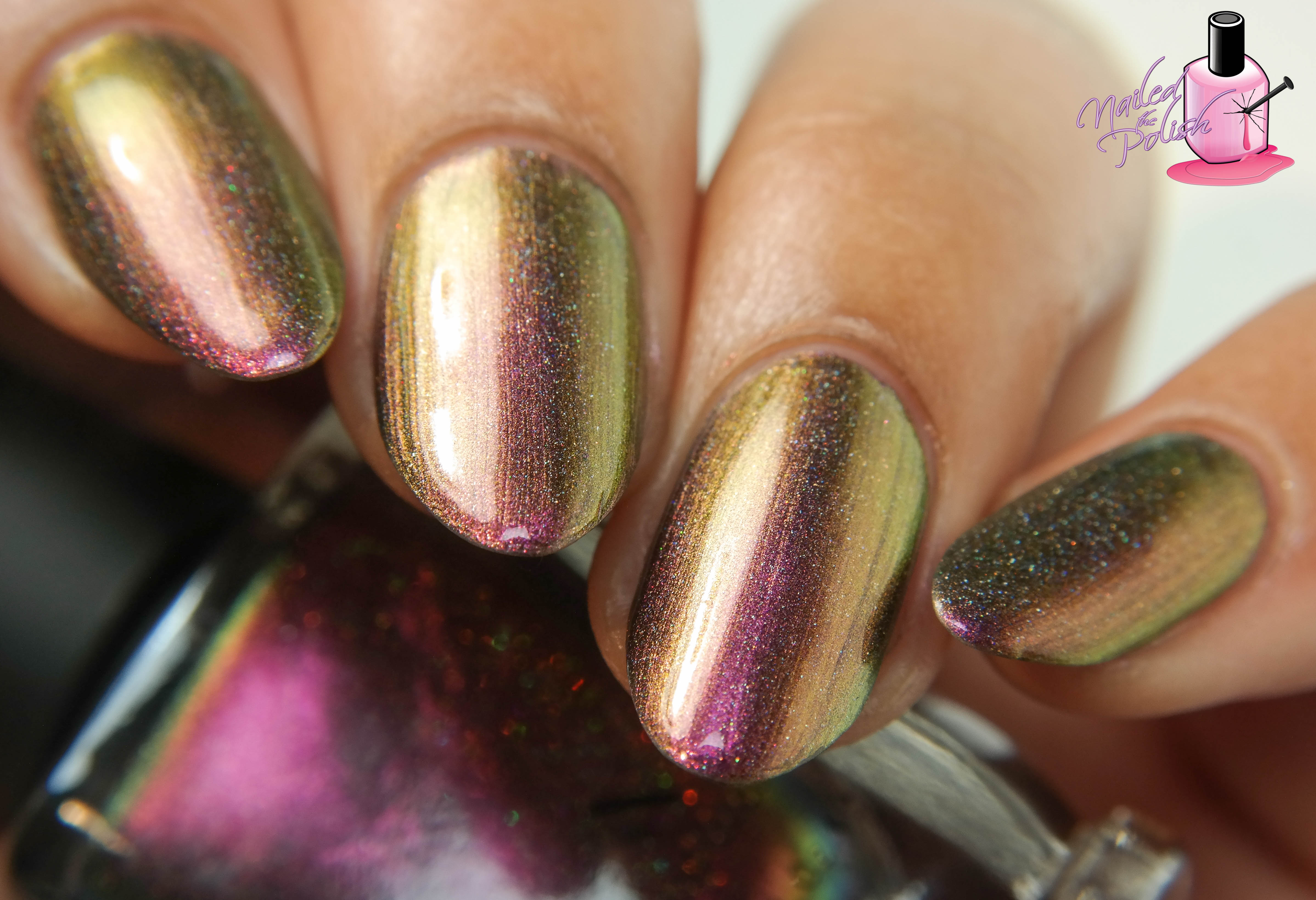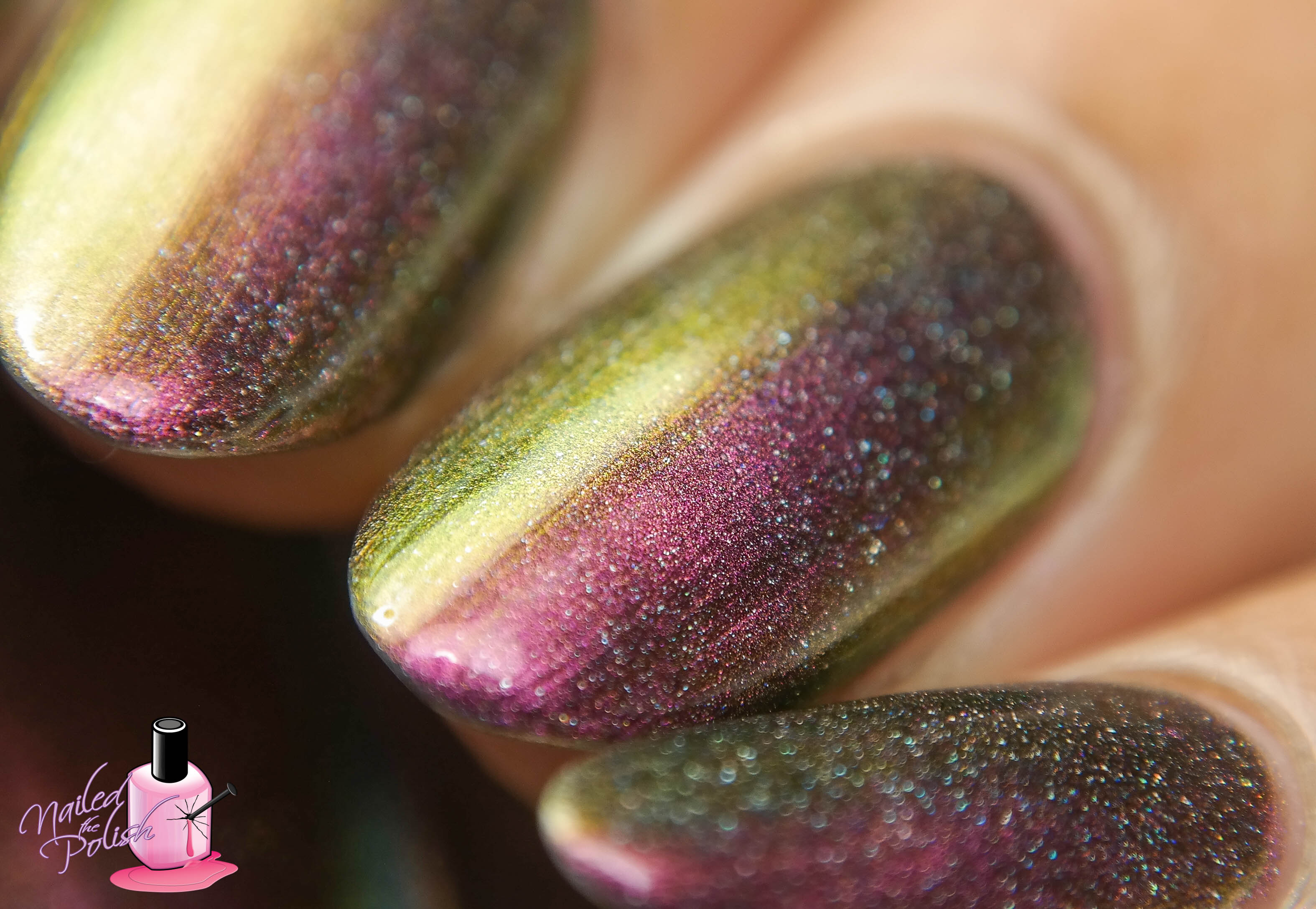 Pink, purple, copper, gold, and green – I can’t believe that I’m seeing this all on ONE NAIL!