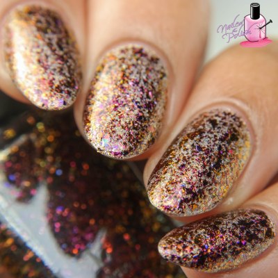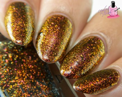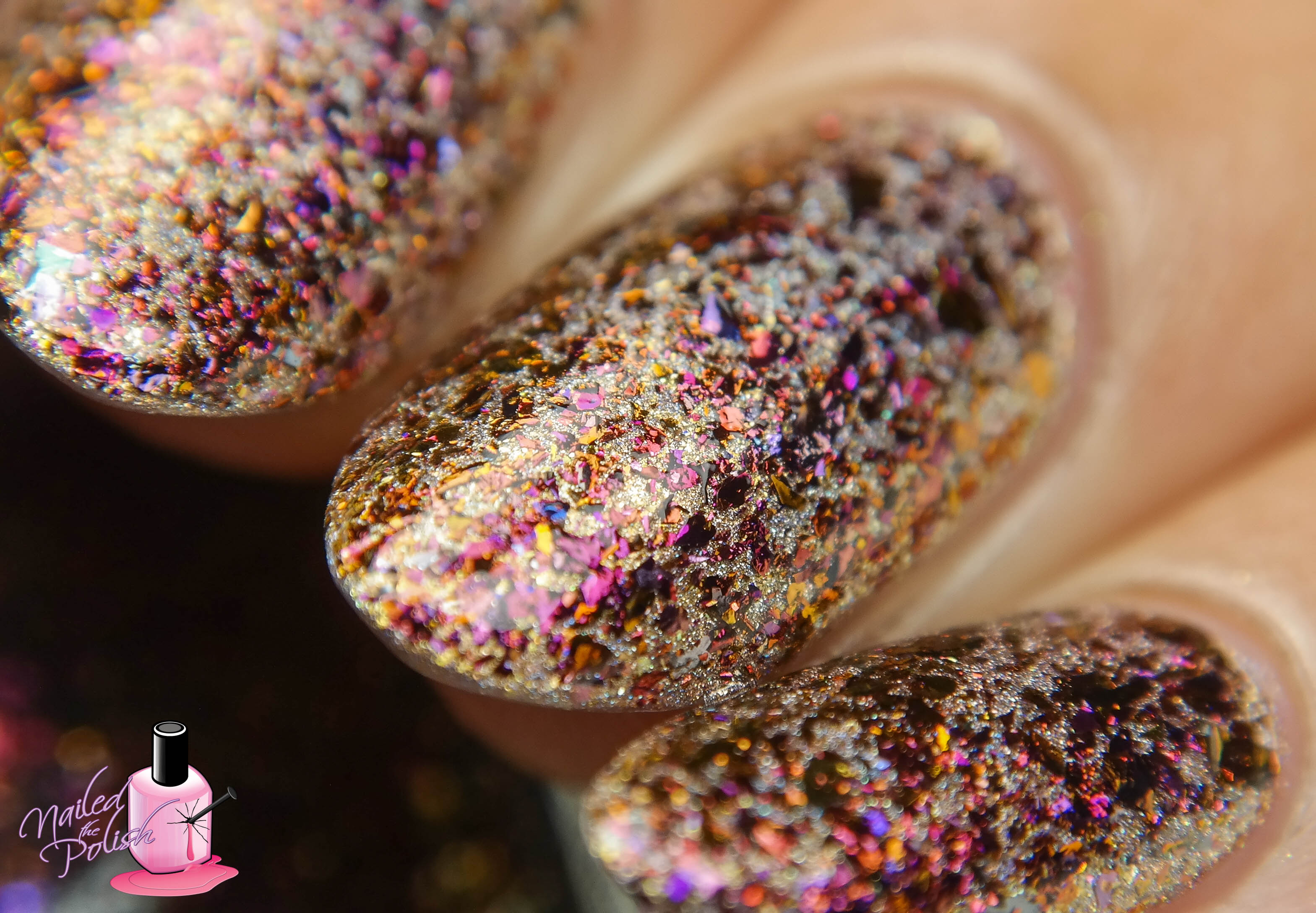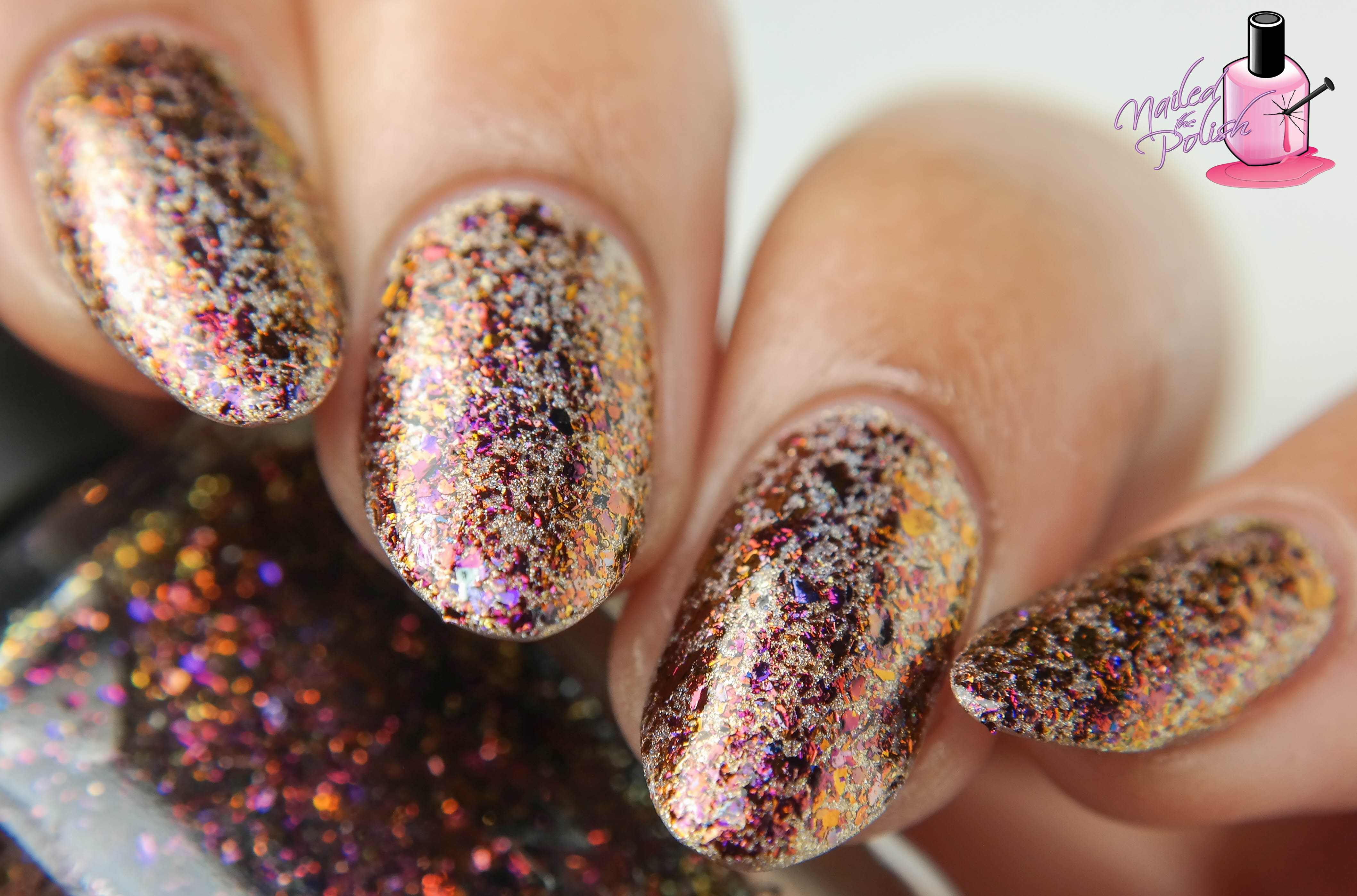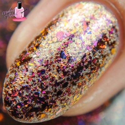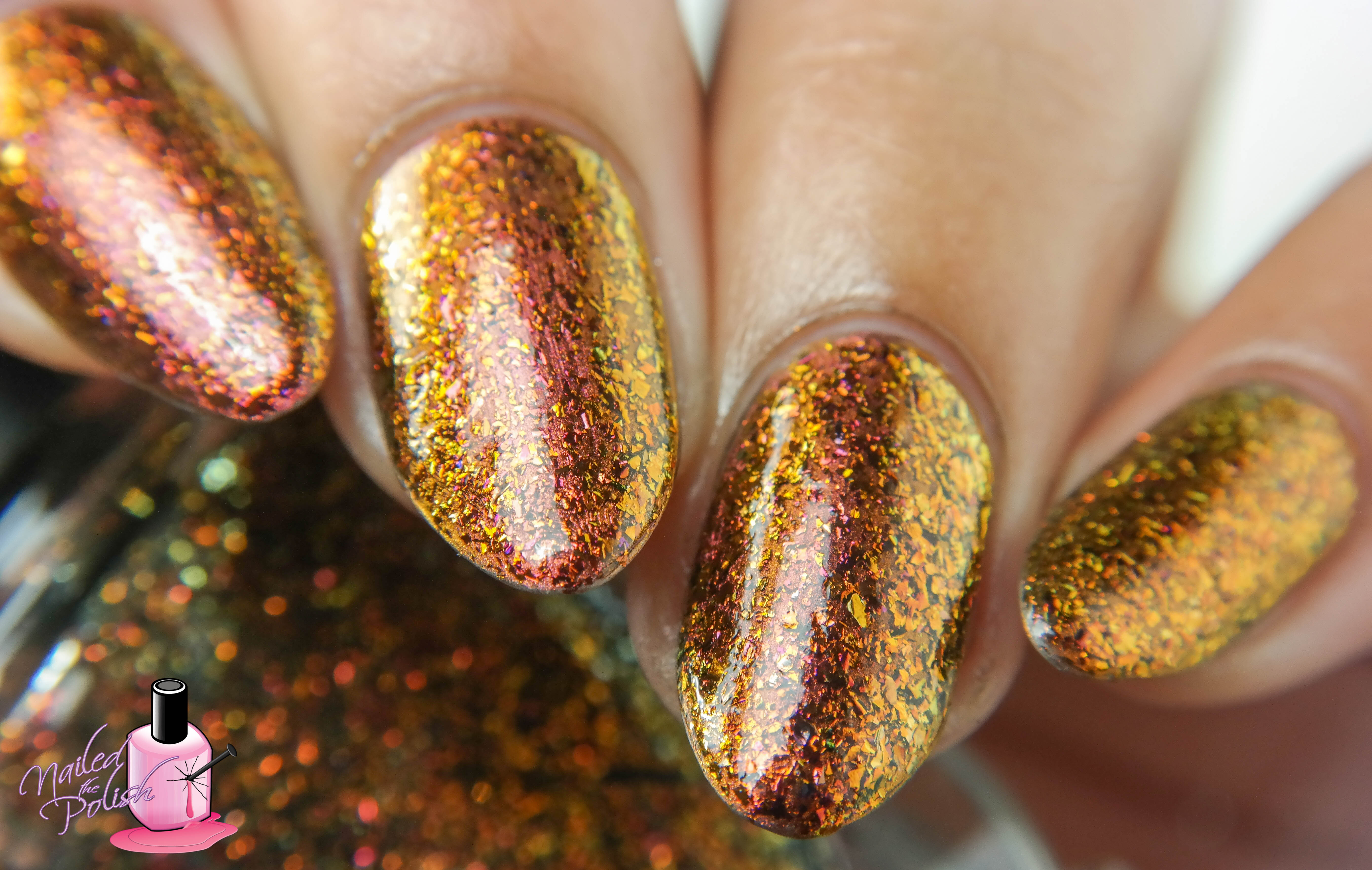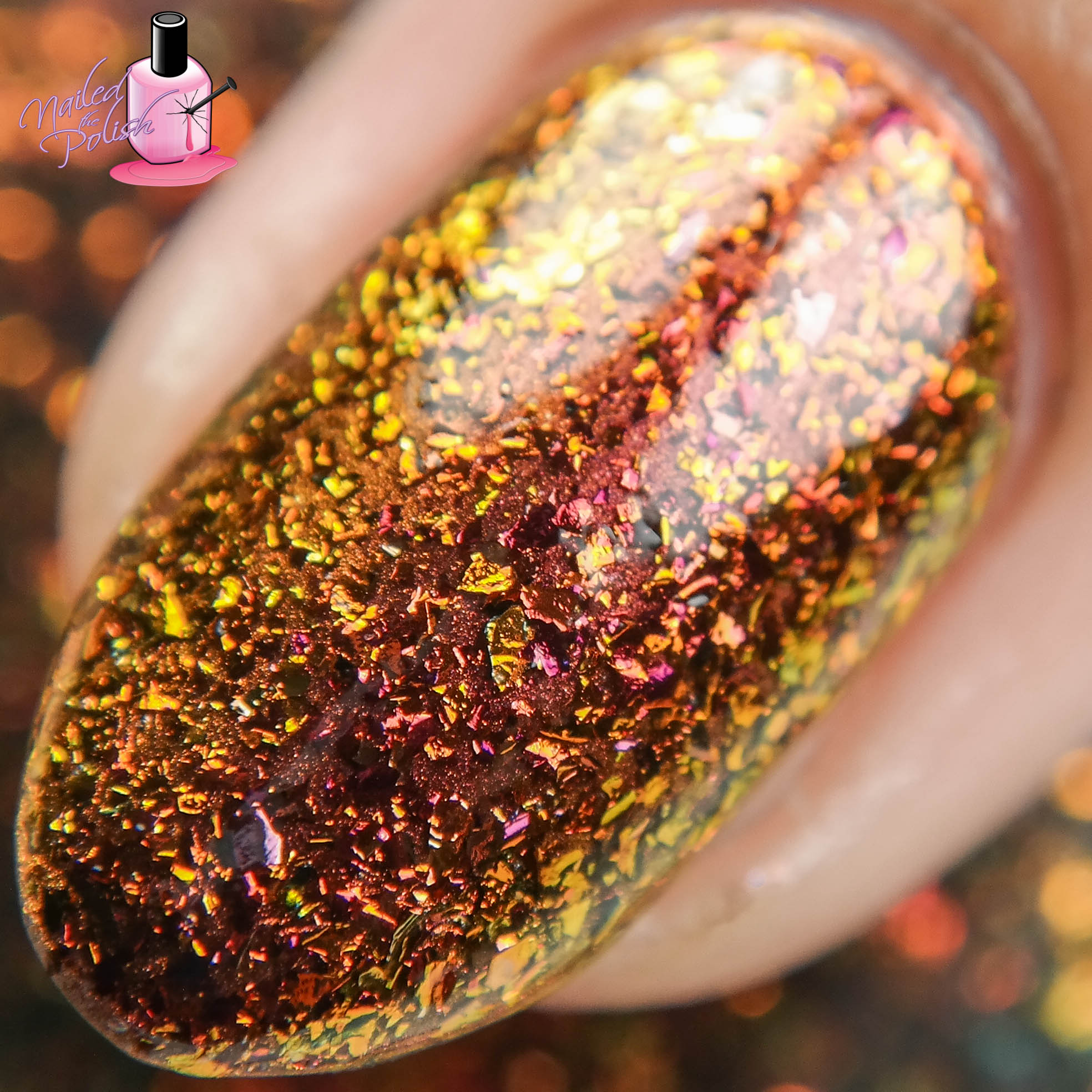 The combination of gold, burnt orange, and holographic shards is absolutely stunning!