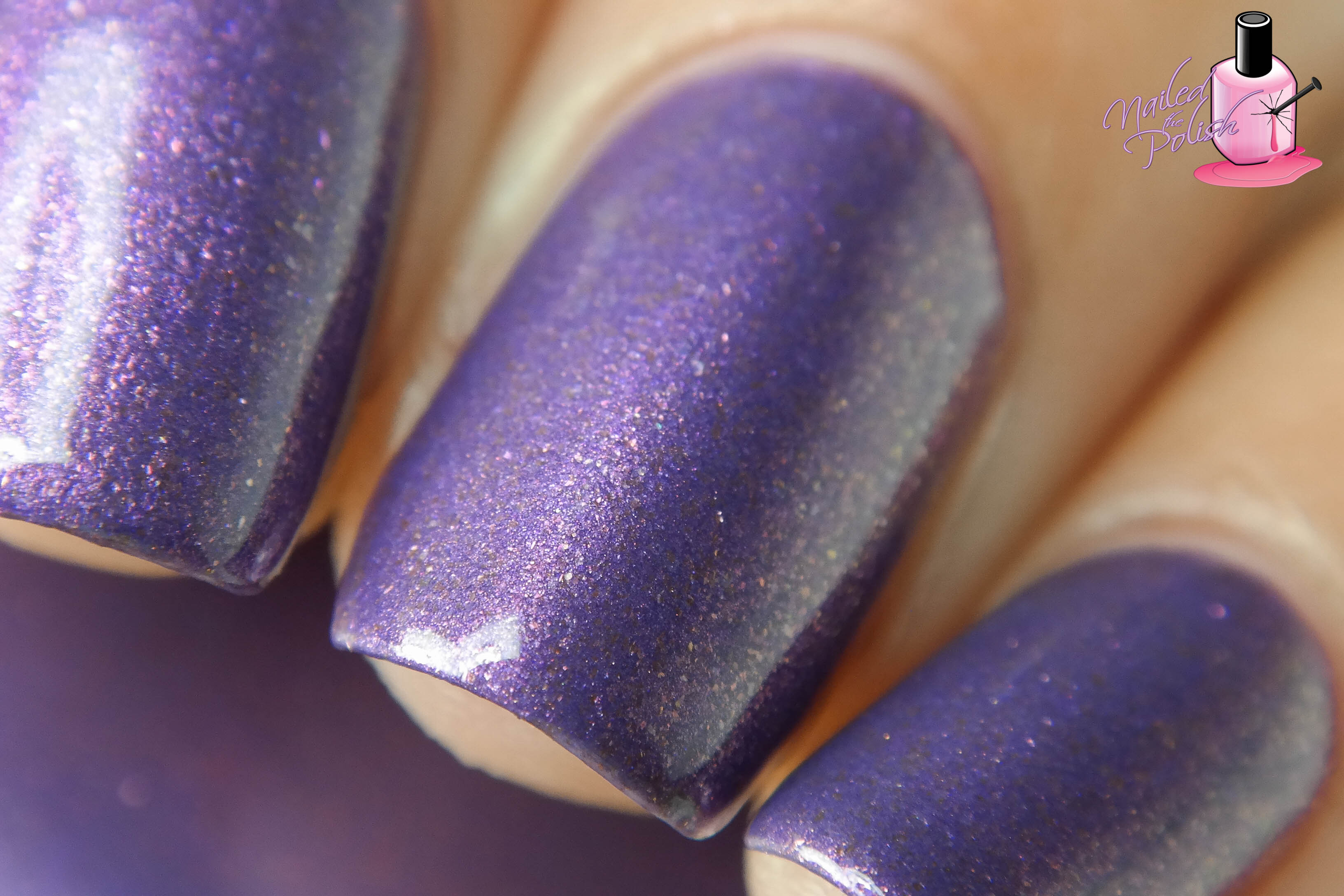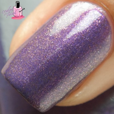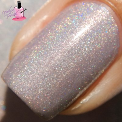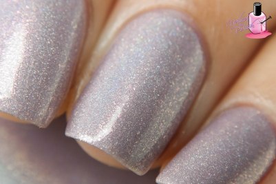 Afterglow is a beautiful light lavender linear holo with added pink shifting micro flakes. Shown here is two coats plus top coat. Formula is really nice and has great coverage. I love the soft lavender shade of this polish! I also love the added pink micro flakes as they give this polish a glowing effect – hence, Afterglow! 🙂