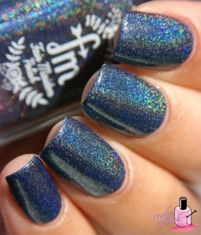 Starry Night is an intense midnight blue linear holo with golden metallic flakes. Shown here is two coats plus top coat. FANTASTIC formula! So smooth and buttery allowing for perfect application. I am SO in love with this polish. The midnight blue base is marvelous! The linear holo is amazing! The golden metallic flakes give this polish an extra sparkle that completes this polish. It’s hands down my favorite from the collection! ❤