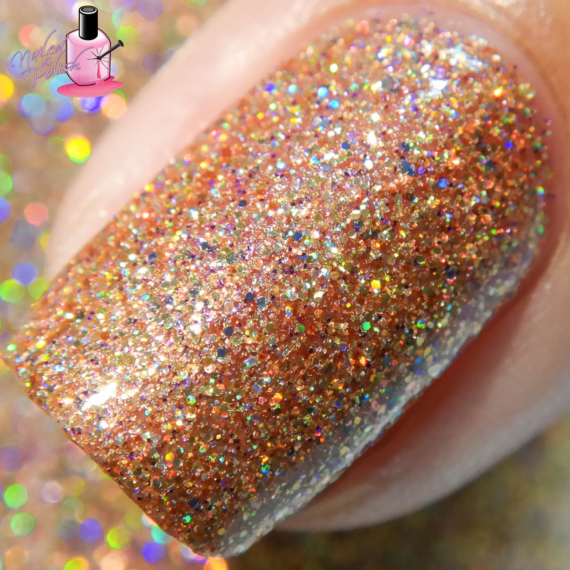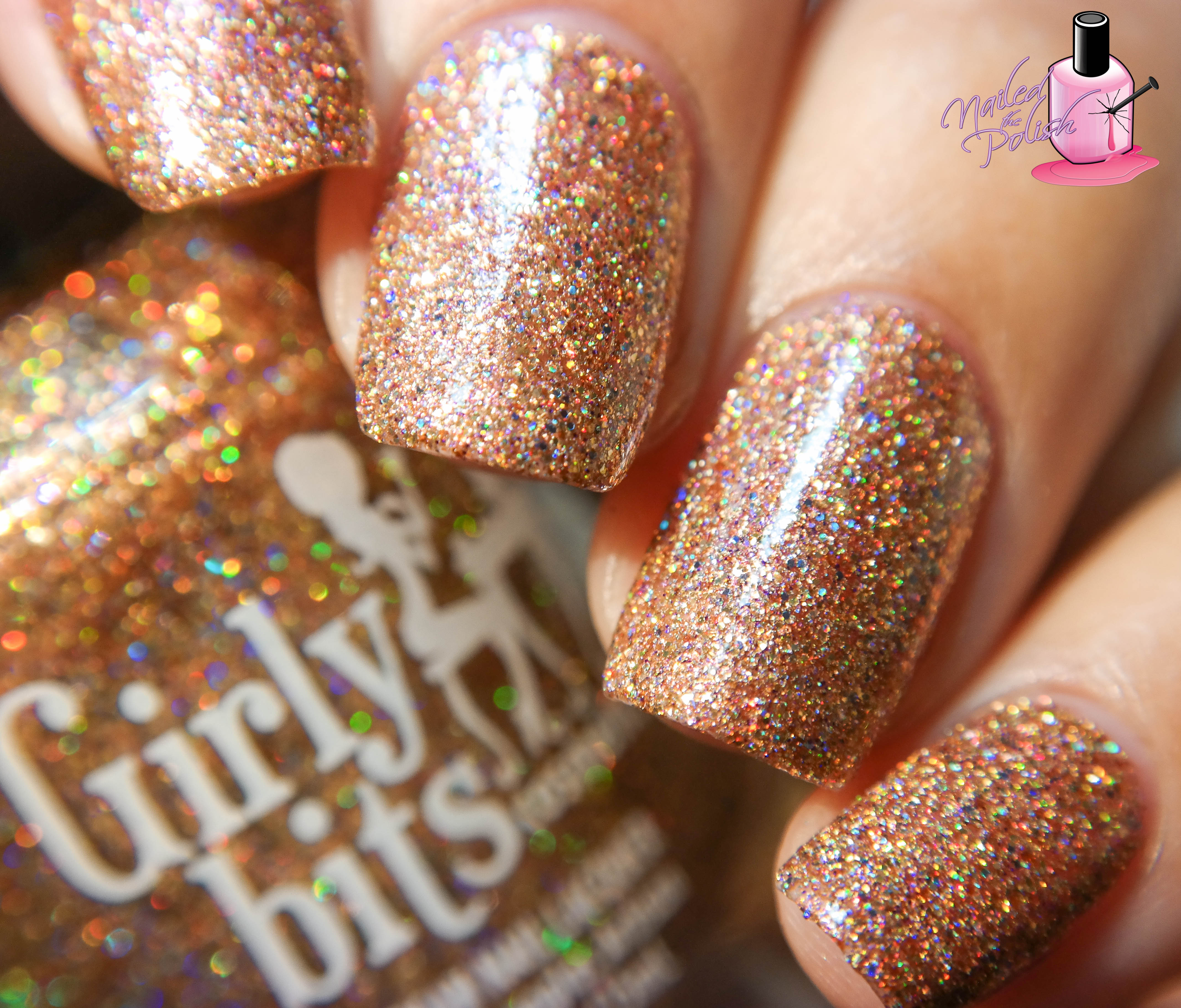 Tubthumping is a beautiful sheer gold jelly with subtle pink-violet shimmer and is packed with bronze and gold holographic micro glitters. Shown here is two coats plus top coat. Formula is aaaaamazing! Since the glitters are so small and fine, this baby goes on just like butter! Not to mention, it’s such an absolutely gorgeous shade! The gold tinted base, the metallic holo glitters, the subtle shimmer… all I can say is WOW!