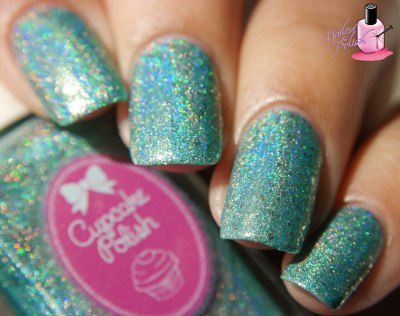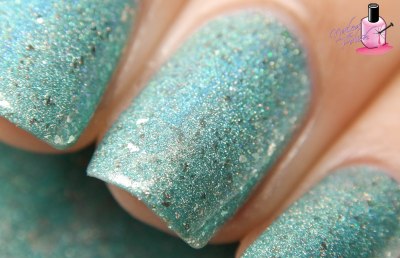 Last up is Only Have Ice For You by Cupcake Polish – a mint/aqua linear holographic with silver flakies. Shown here is two coats plus top coat. I loooooooooove this polish so much! Everything about it is pure amazingness! The formula is perfect, the mint/aqua base is gorgeous, the holo is wonderful, and the silver flakies are to die for!