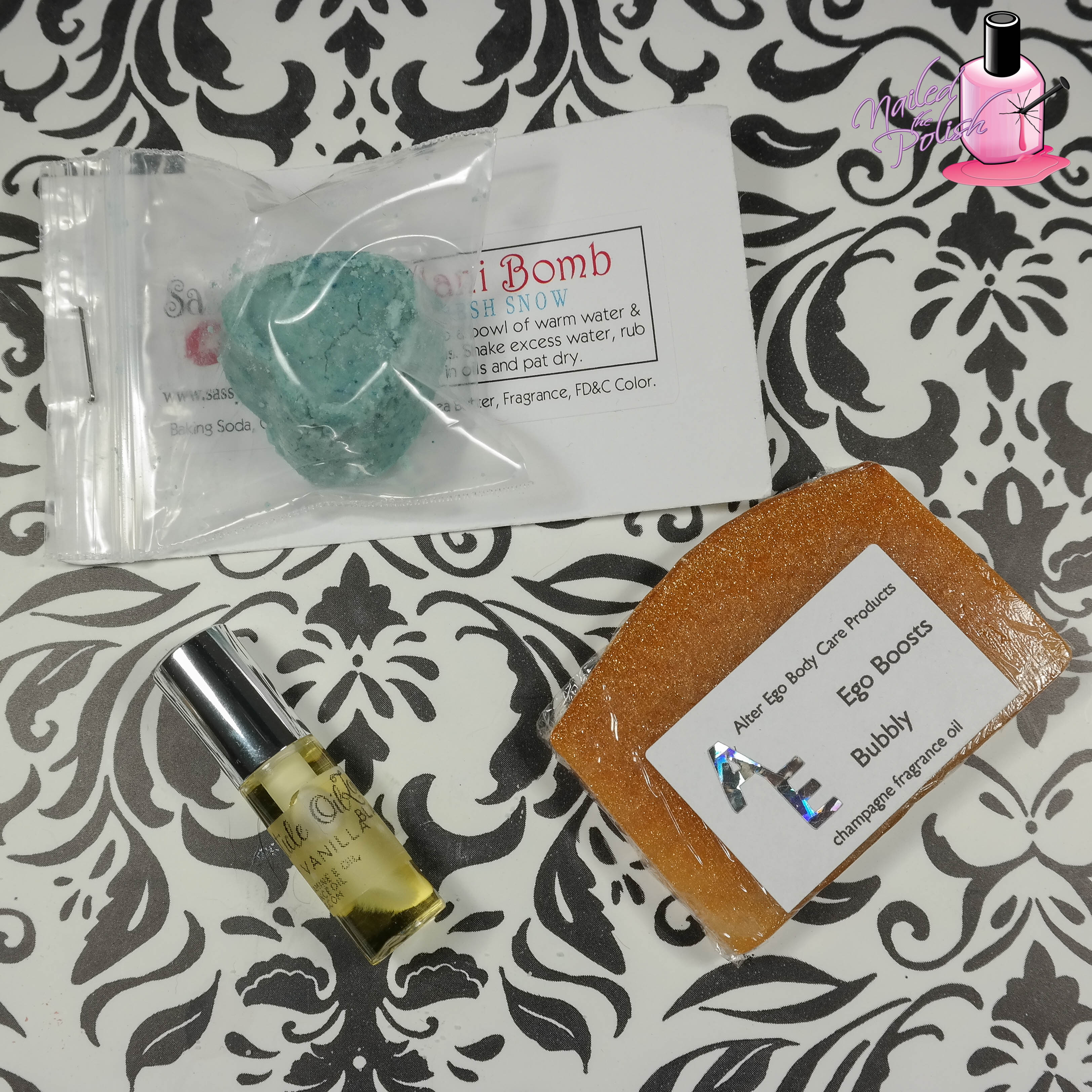 This box is so awesome! Talk about a variety of makers and products! The polishes included are each so different yet still have a winter feel to them. The two bath and body care products are made exceptionally well. The samples are absolutely adorable and smell great! This is a great box to not only have but to gift as well 🙂