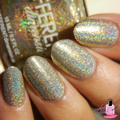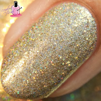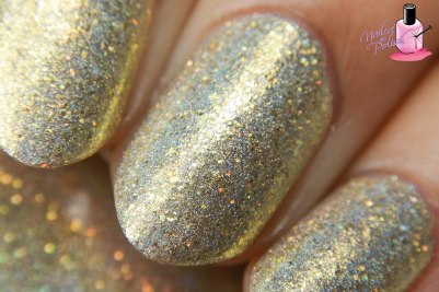 A Little Bit Of Bubbly is a beautiful light gold holo filled with gold shimmer, gold micro flakes, and gold holographic micro glitter. Shown here is two coats plus top coat. Talk about absolutely fantastic! This polish is breathtaking! I gasped when I first opened it, I gasped when I swatched it, and I gasped the entire time I was photographing it! Words cannot describe the love that I have for this polish so I’m hoping that my photos say it all. ❤ ❤ ❤