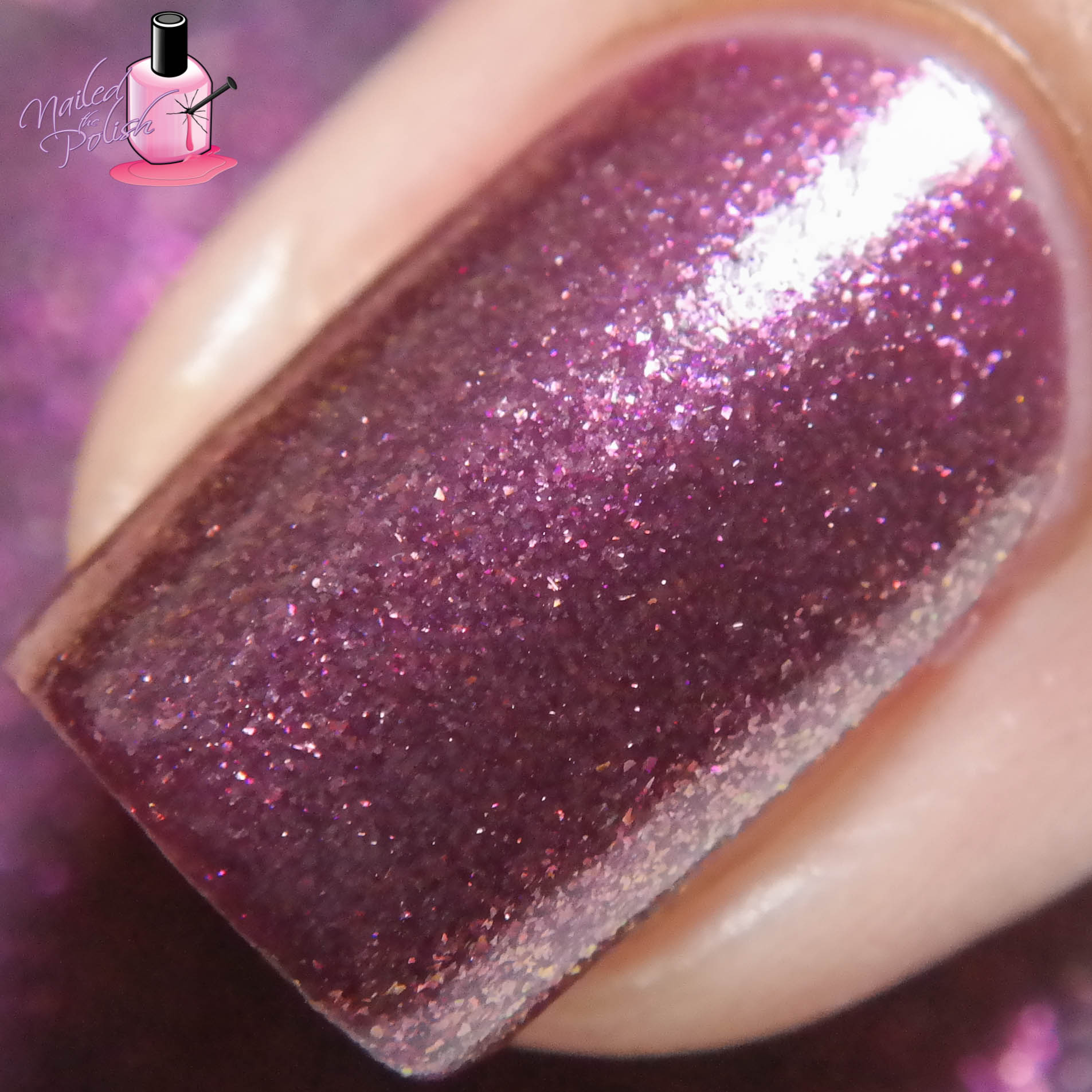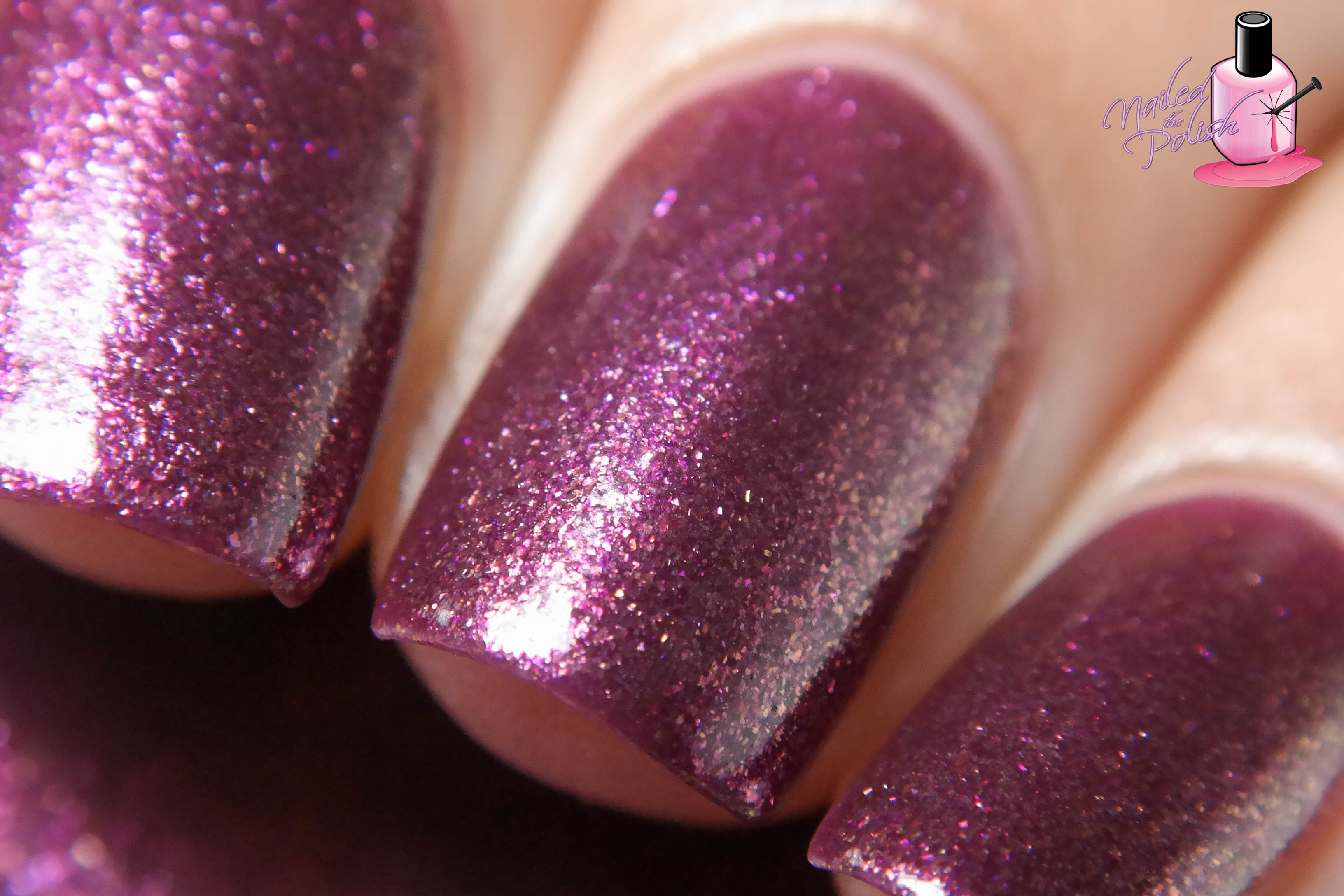 Last up is Persephone – a rich plum jelly base with gold flakes and orange to pink color shifting flakes. Shown here is two coats NO top coat. Just like the other two in this trio, formula is top notch! The mix of flakes in this polish is exceptional and is definitely something that you need to see with your own eyes. My pictures do not do this polish justice!