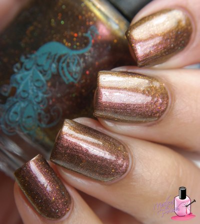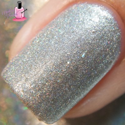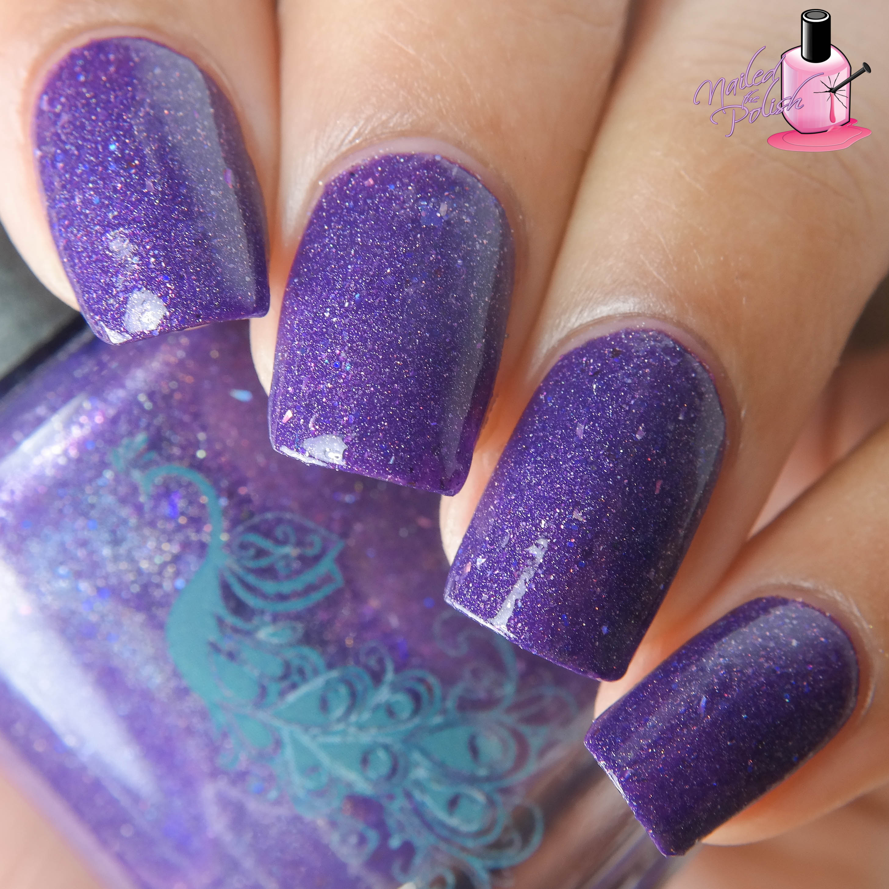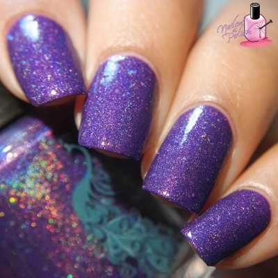 Heeya! is a royal purple holo with iridescent and micro flakes. This polish was inspired by Leela and her hair and was named after her signature karate kick sound that she makes. Shown here is two coats plus top coat. It’s a little thick (because it’s packed full of flakes!) but is very easy to control and levels great! This polish is wonderful and I LOVE the added flakes!