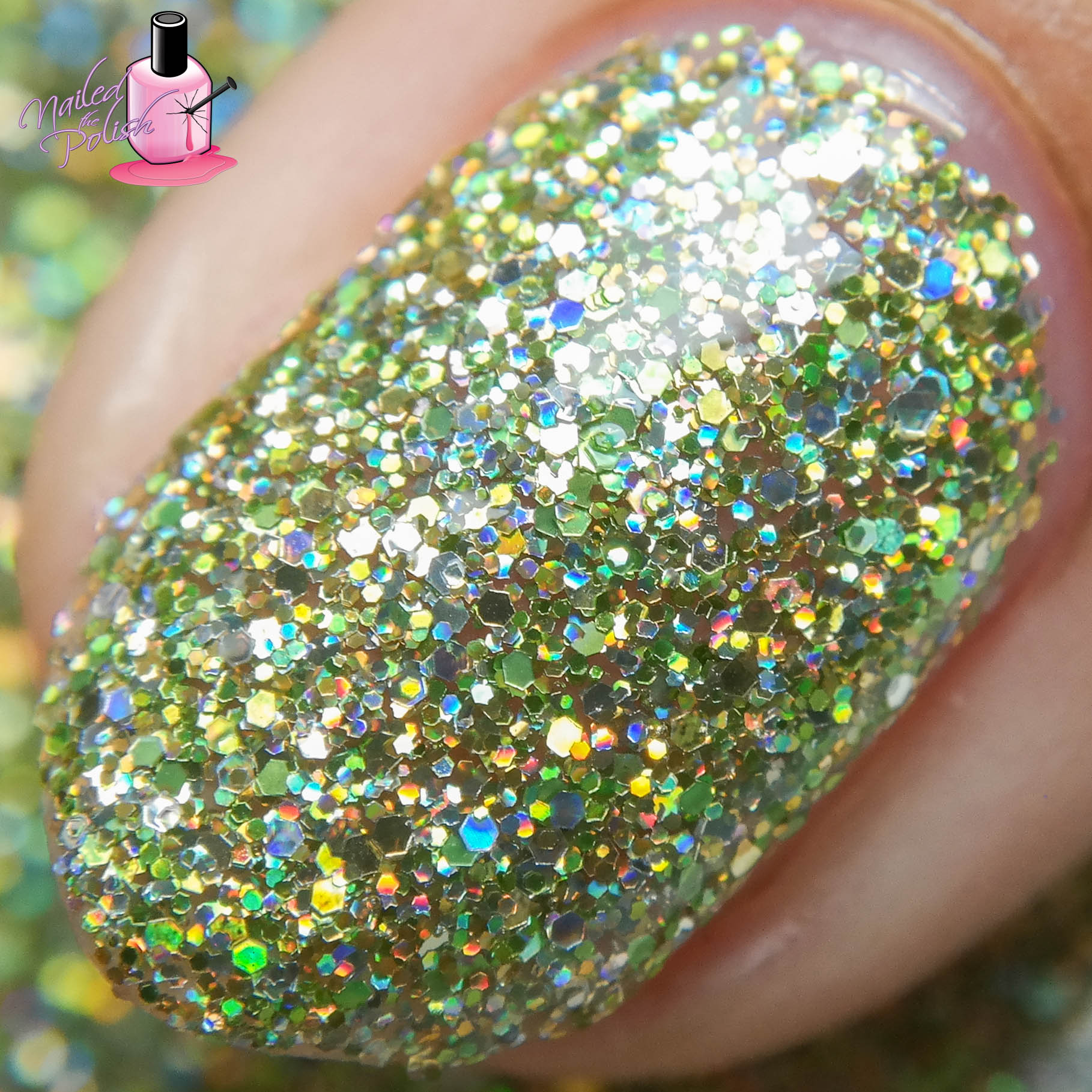 Saved my favorite for last! Shamrock Shimmy is a stunning linear holographic polish packed with vibrant green micro glitter and added gold ultra holographic glitter. Shown here is two coats plus top coat. Yes, the formula is amazing but what’s even more amazing are the elements that make up this polish! For those of you who picked up Forever Friend-zoned , this polish has the same finish 🙂 If you don’t have it: 1. GET IT and 2. It’s not quite a colored linear holo, more like an super, super, suuuuper fine micro glitter that when brushed on gives the illusion of a colored base holo! If it doesn’t make sense (which I’m sure it doesn’t), don’t worry – all you need to know is that you NEED this polish!