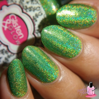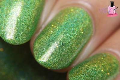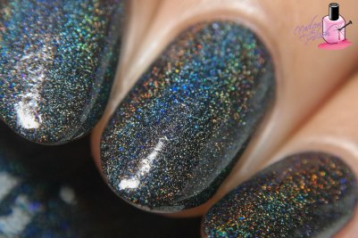 Accept Understand Love is a light grass green linear holo with blue shimmers and blue and silver holographic micro glitters. Shown here is two coats plus top coat. Just like the other polishes in this box, the formula is flawless! I love the green shade (doesn’t make my skin weird, woo! lol) and the added elements are perfect! ❤