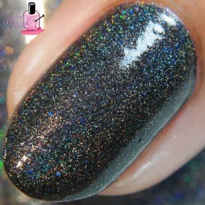 I ❤ Someone with Autism is a black linear holo with blue shimmers and flakies and navy blue holographic micro glitters. Shown here is ONE coat plus top coat. Can you say perfection?! I am loving everything about this polish! Easily one of the best black holo polishes in my collection!