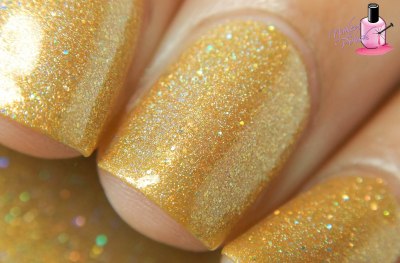 Bueller… Bueller… Bueller… is a gilded golden light brown linear holo loaded with gold shimmers and flakies. Shown here is three coats plus top coat. This polish had a slight visible nail line after the second coat so I added a third to cover it up. As far as the formula goes, it’s super easy to apply and control with perfect leveling and dry time!