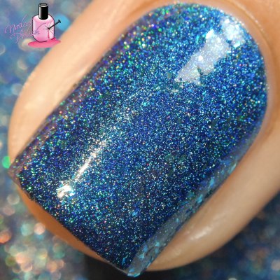 Shake N Bake is a royal blue linear holo with shiny silver flakies. Shown here is two coats plus top coat. Formula is absolutely fantastic! It was opaque in one coat but I added a second to deepen the royal blue base. I am so in love with this polish! The royal blue holo base plus silver flakies mixed in is perfection ❤