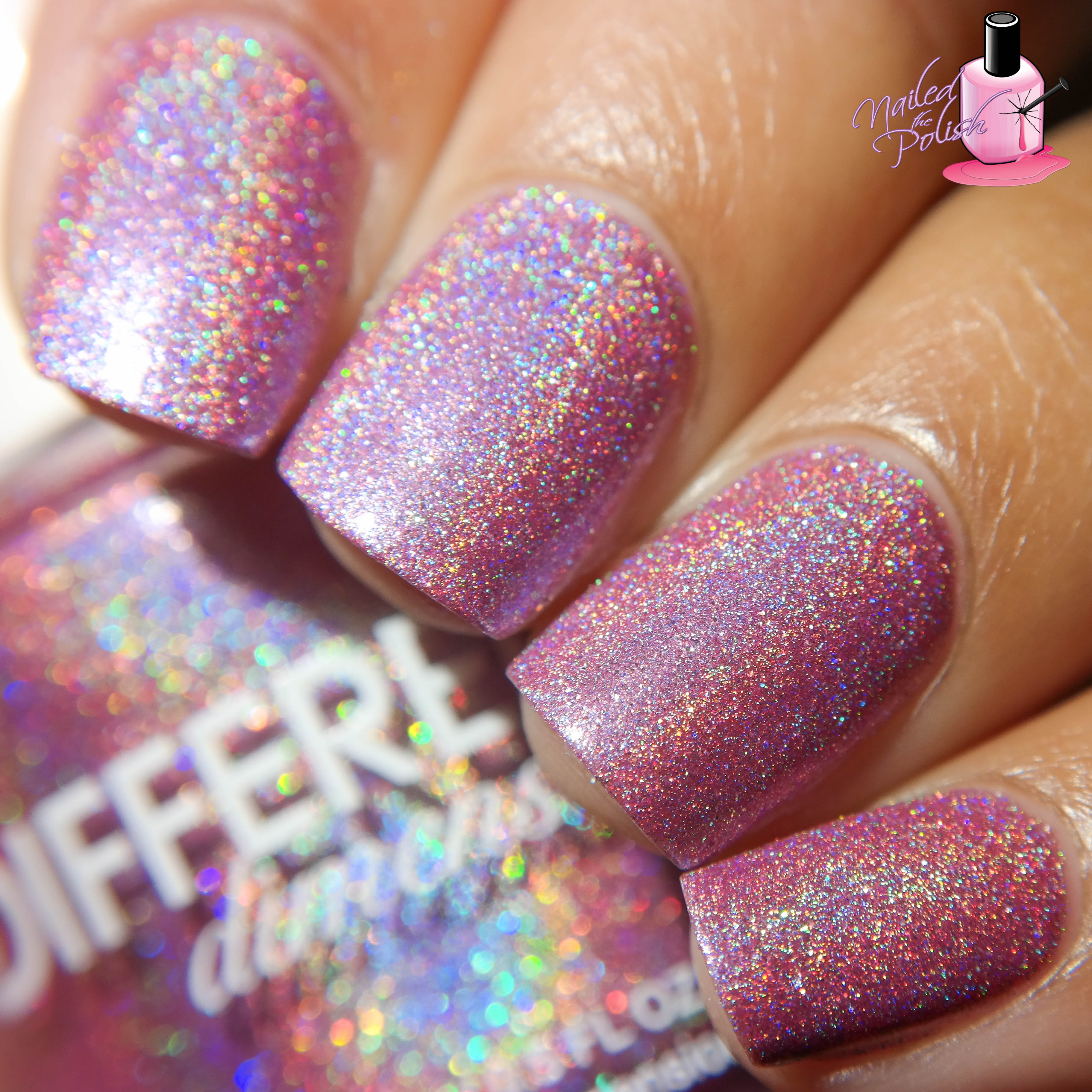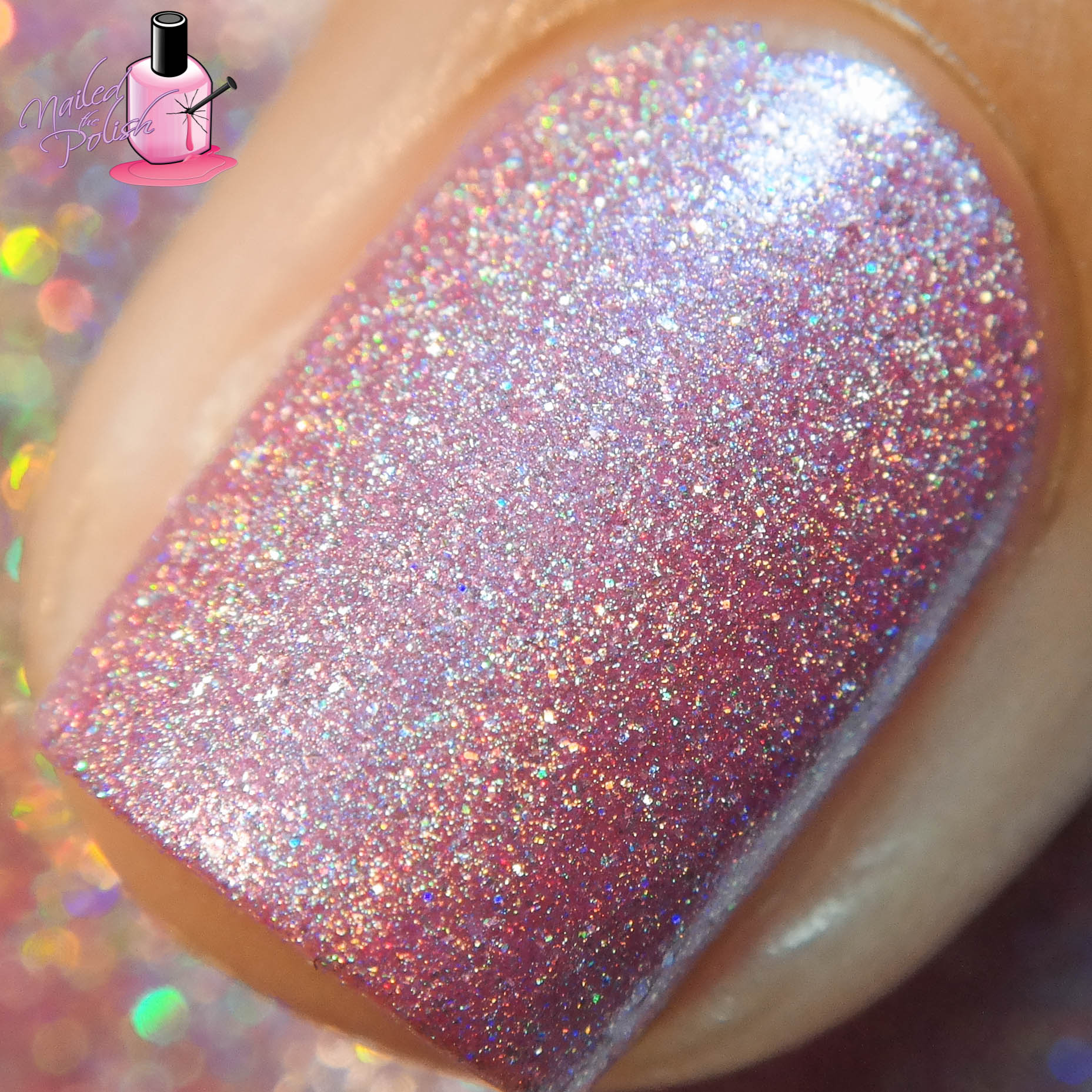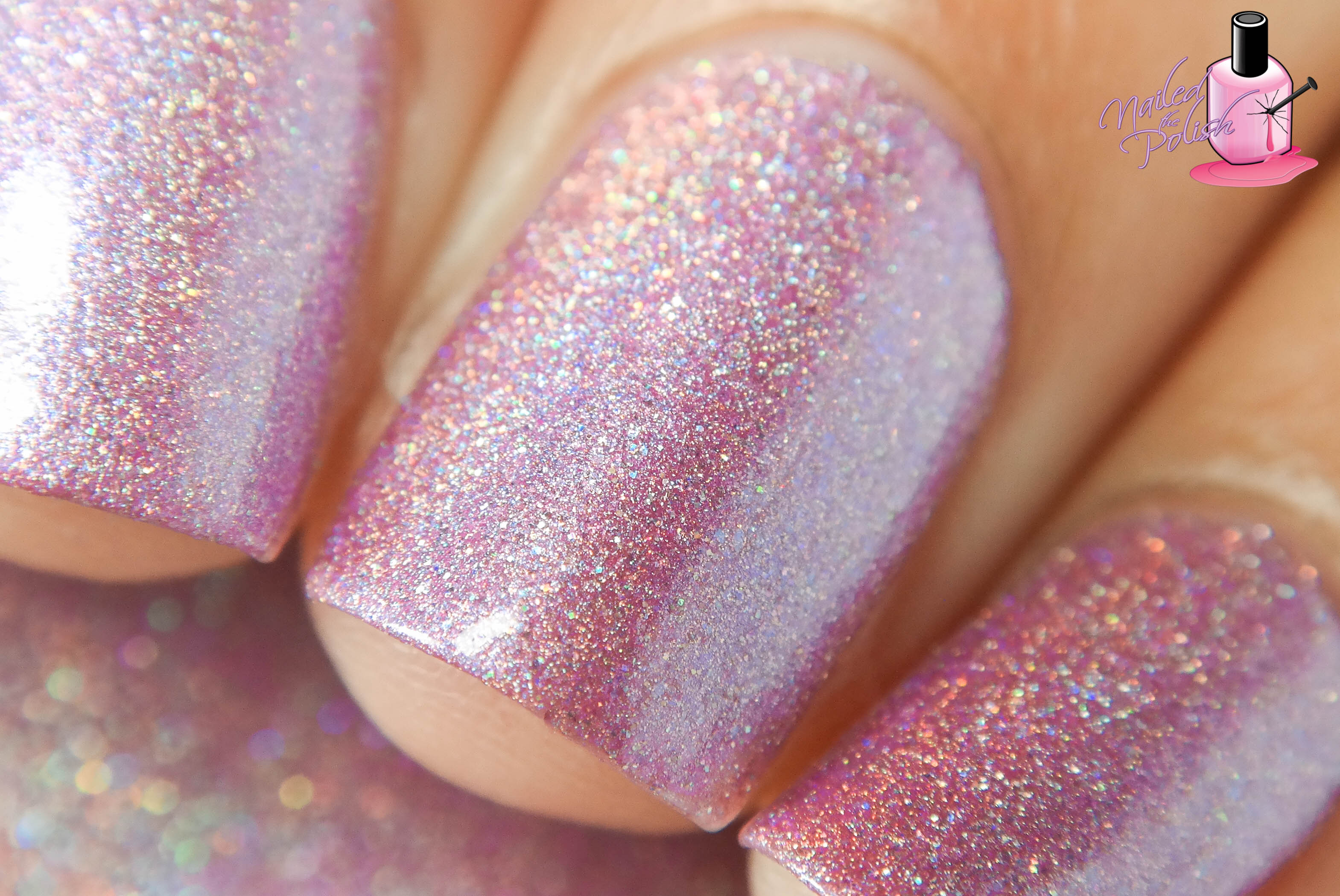 As If! is a light lavendar leaning pink linear holo with added blue-violet shimmers and micro glitters. Shown here is two coats plus top coat. This polish has an amazing formula with amazing coverage. The shimmers are absolutely stunning and make this polish shine!