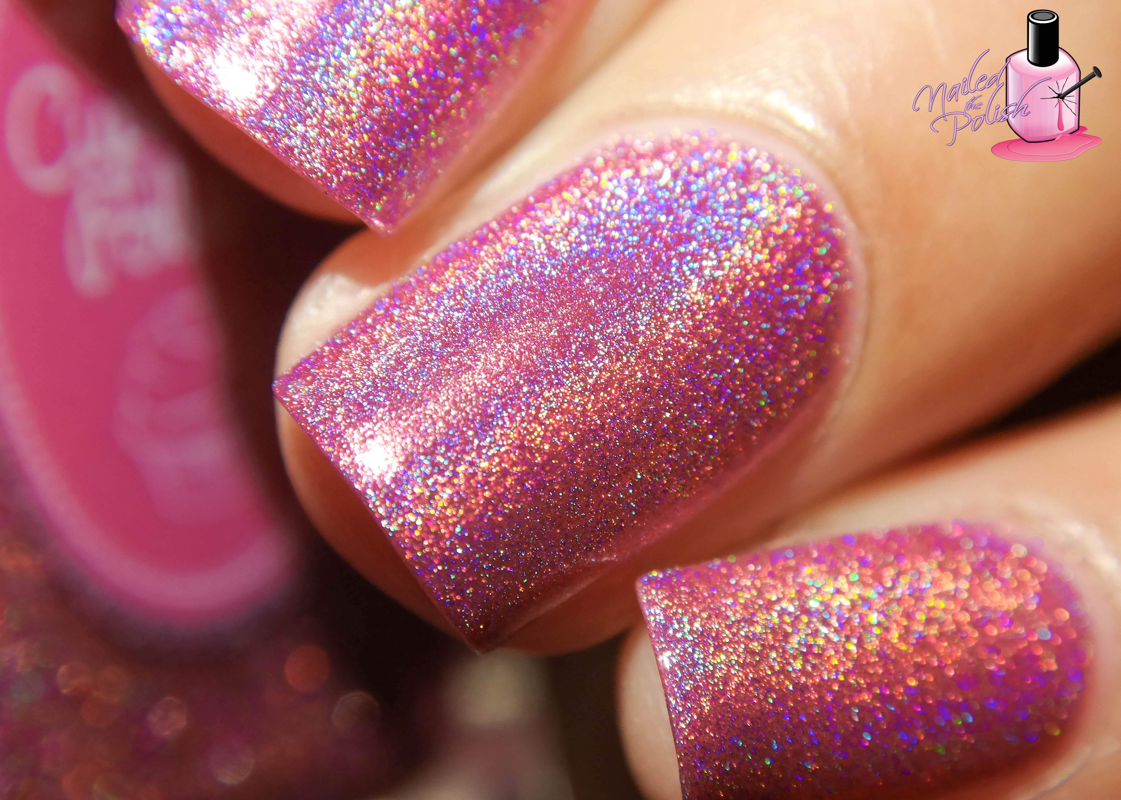 Hatch Of The Day is a bright bubble gum pink super intense linear holo. Shown here is two coats plus top coat. The holo in this polish is so strong!
