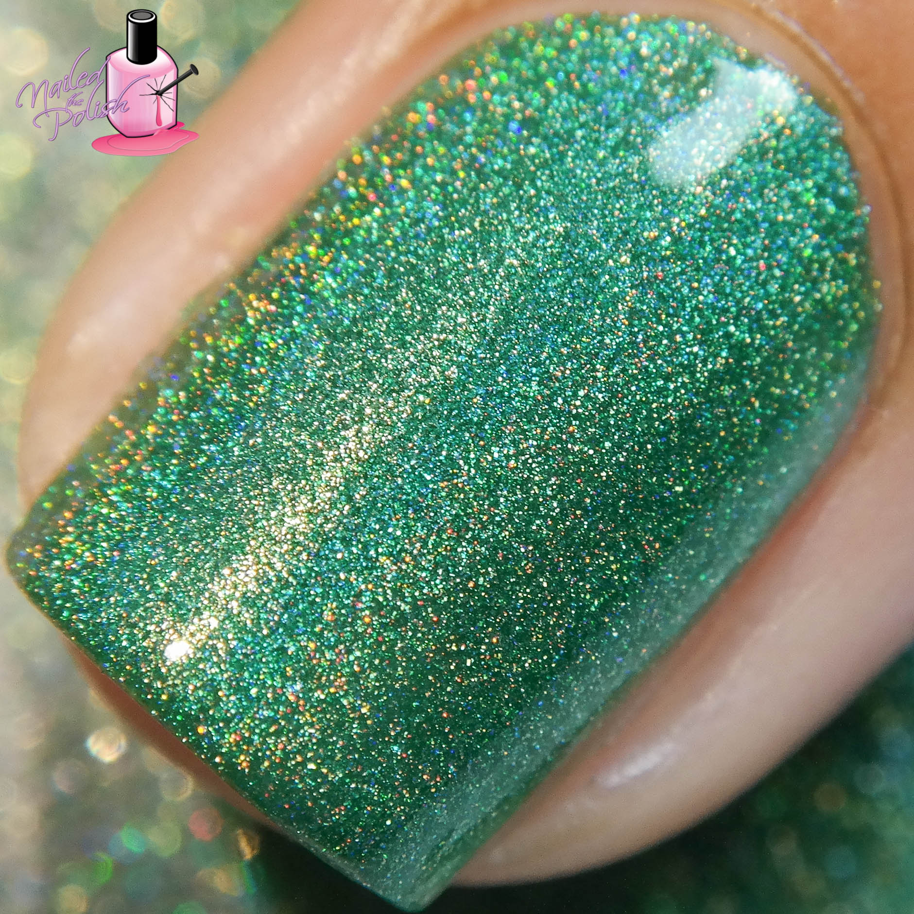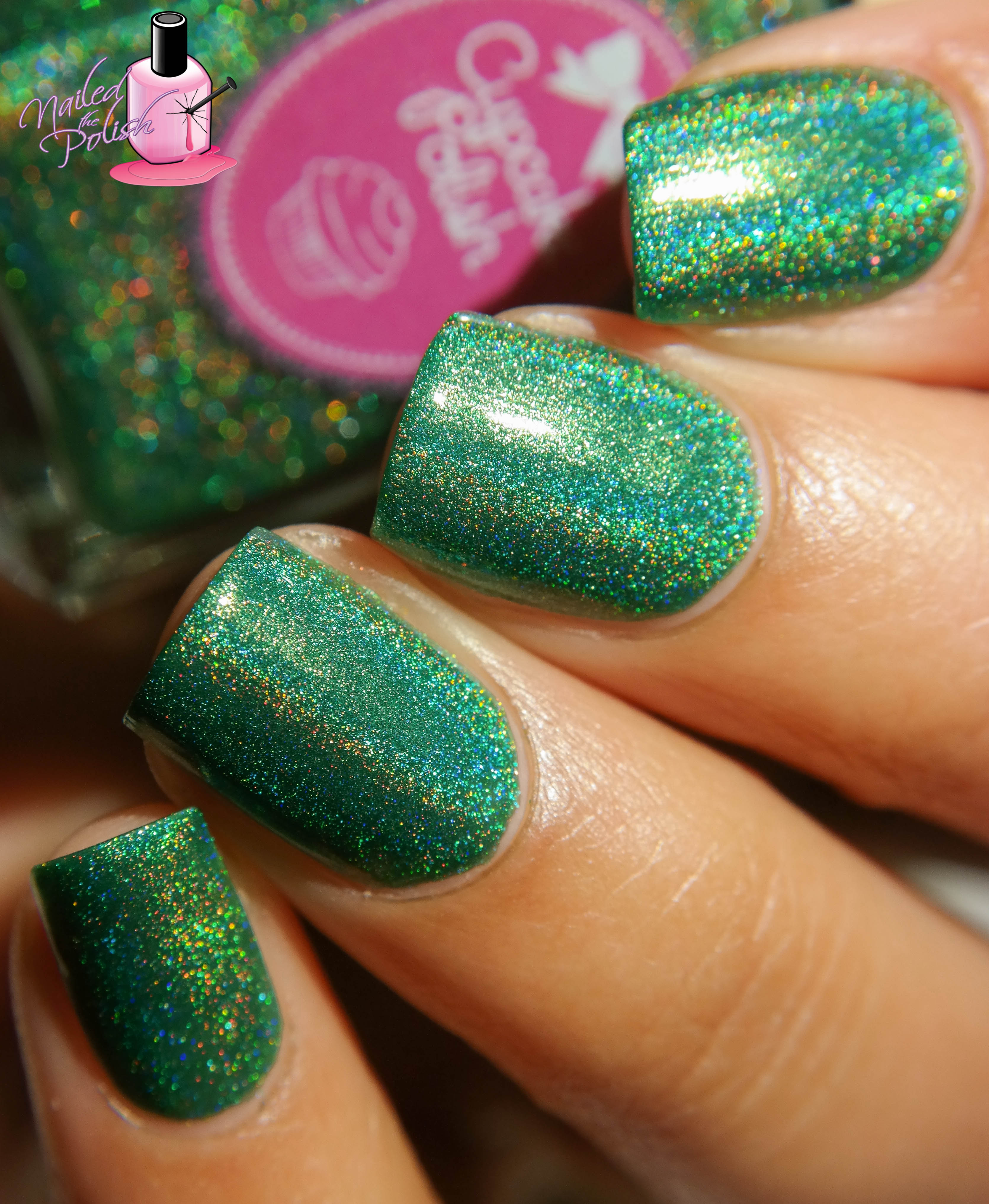 Little Butterfly is an emerald green linear holo. Shown here is two coats plus top coat.