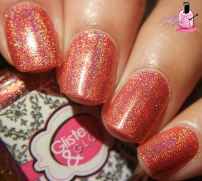Great Barrier Reef Plate Corals is a burnt Orange linear holo with added gold shimmers. Shown here is three coats NO top coat. The formula is a little thin but it applies very, very well. It’s really easy to control and dries & levels perfectly!