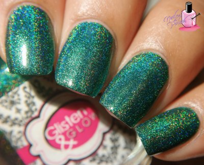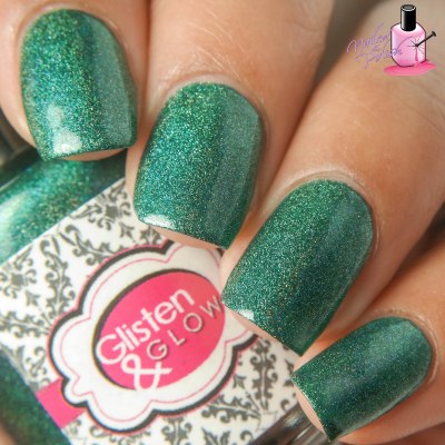 Fern Gully is a forest green linear holo with blue and gold shimmers. Shown here is two coats plus top coat.