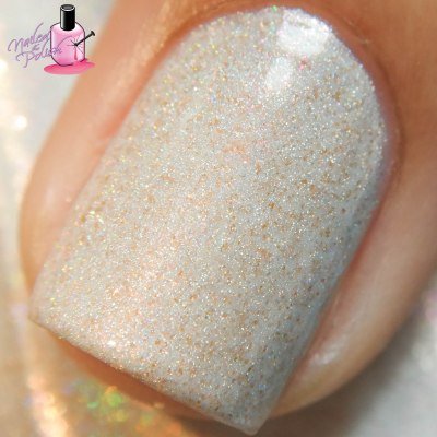 Bad Hare Day is an ivory linear holo with copper speckles throughout. Shown here is three thin coats plus top coat.
