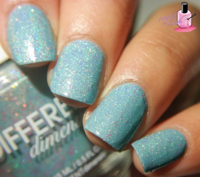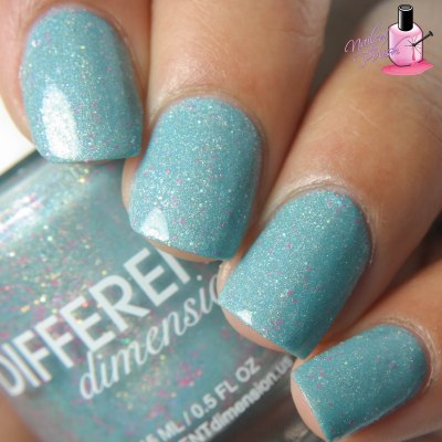 Monroe is a lightened tiffany blue linear holo with added shimmers and neon pink micro glitters. Shown here is two coats plus top coat. This polish does dry with a textured finish so you’ll need to use a coat or two of good top coat to smooth everything out.